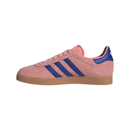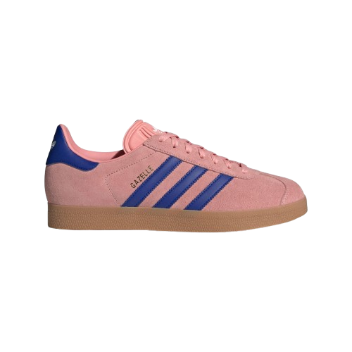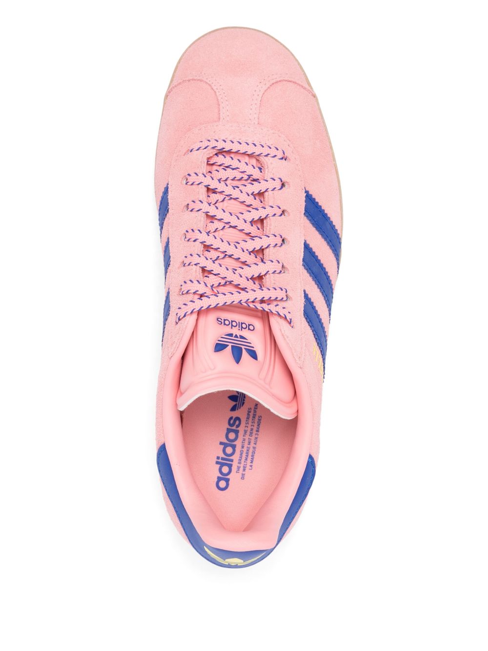 Pink suede Gazelle W trainers by Adidas with round toe, a lace-up front fastening and a contrasting flat rubber sole.
