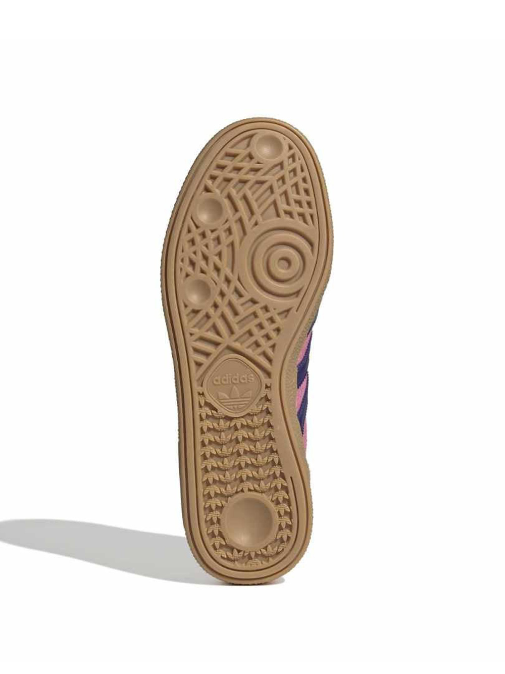 Pink Handball Spezial sneakers by Adidas in leather with round toe, lace-up closure at the front, distinctive 3-Stripes detail on the sides, logo label at the back, and logo tongue.