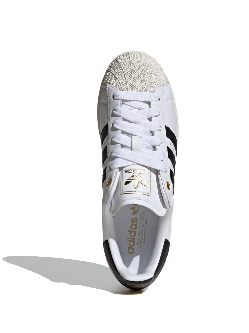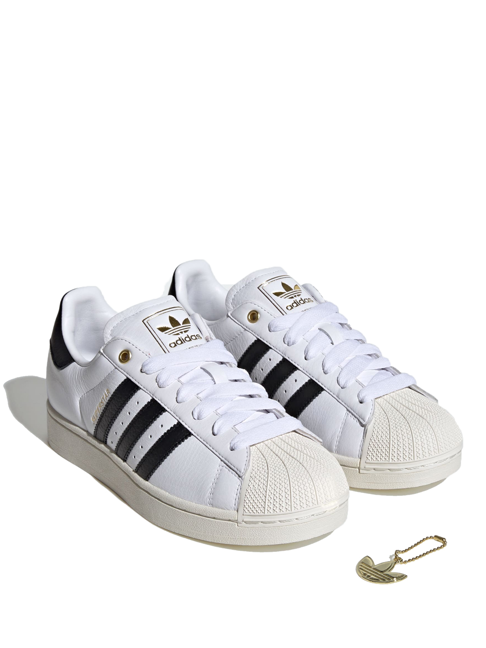 Adidas Superstar II black and white leather sneakers with round toe, contrasting inserts, side logo, and rubber sole.