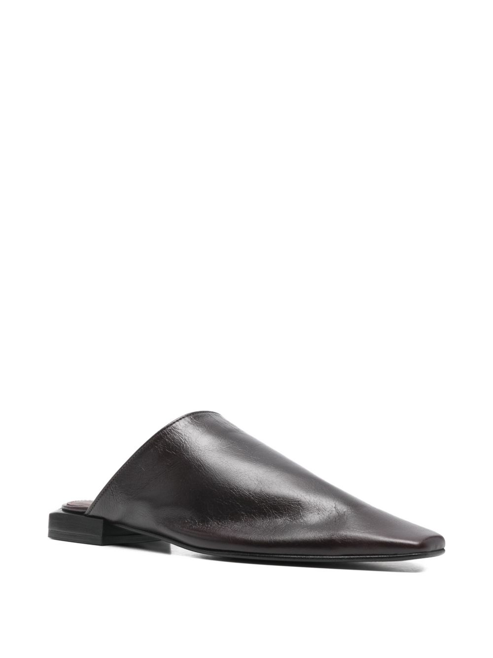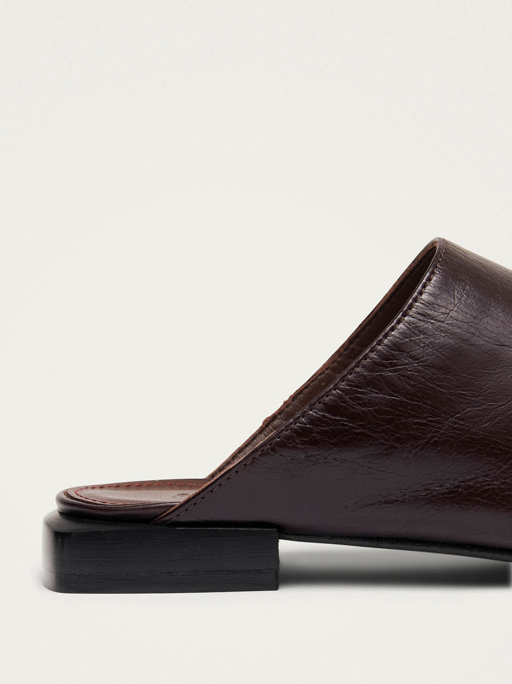Noe Rift brown leather mules by Alohas with square toe and low heel.