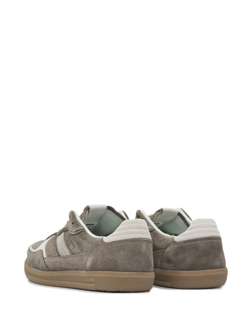 Snekaers taupe TB 490 di Alohas in suede con punta tonda, chiusura frontale con lacci, design a inserti e suola in gomma.