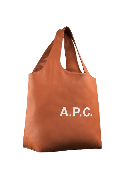 Brown Ninon Tote bag by A.P.C. in polyurethan with 2 handles, inside pocket and front logo