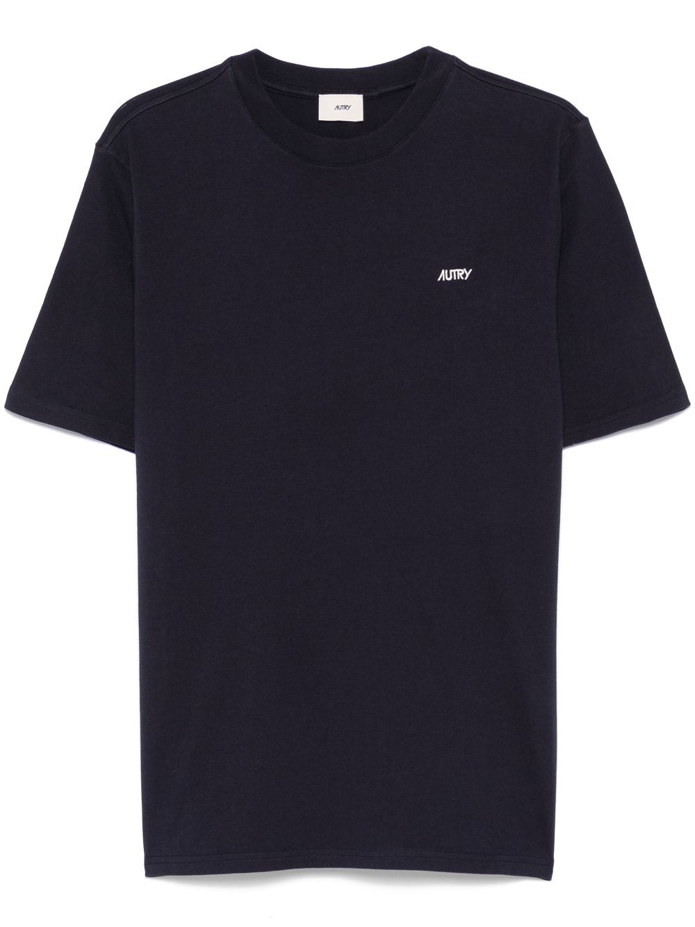 Organic cotton navy T-shirt from Autry with raised crew neck, printed front logo and straight hem.