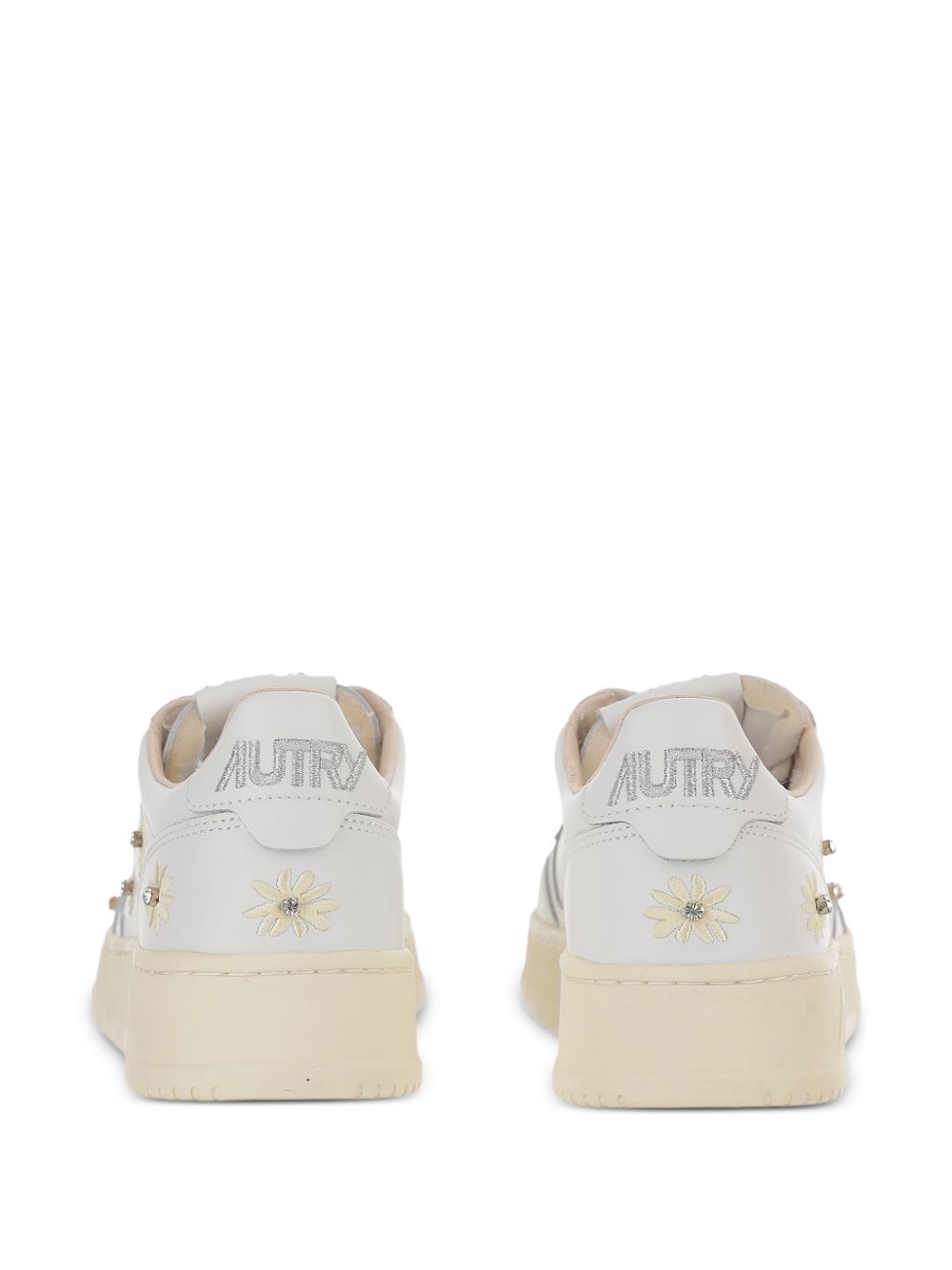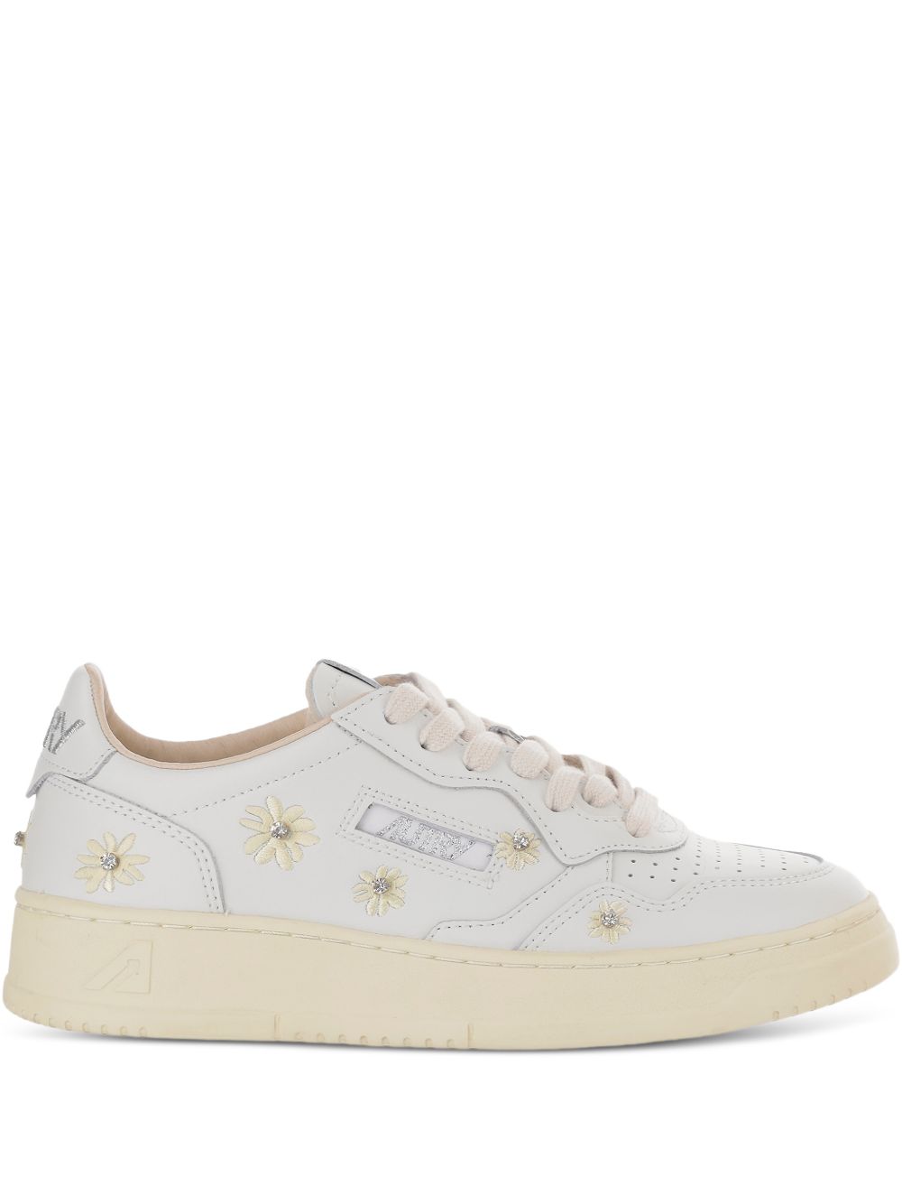 Medalist Low Aulw WE01 white sneakers by Autry in leather with round toe, perforated design, lace-up closure, logo label, and rubber sole.