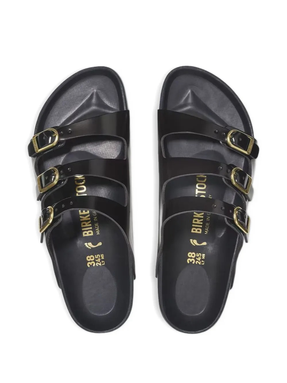 Black Florida Exquisite sandals by Birkenstock in Eva with open toe and buckled face.