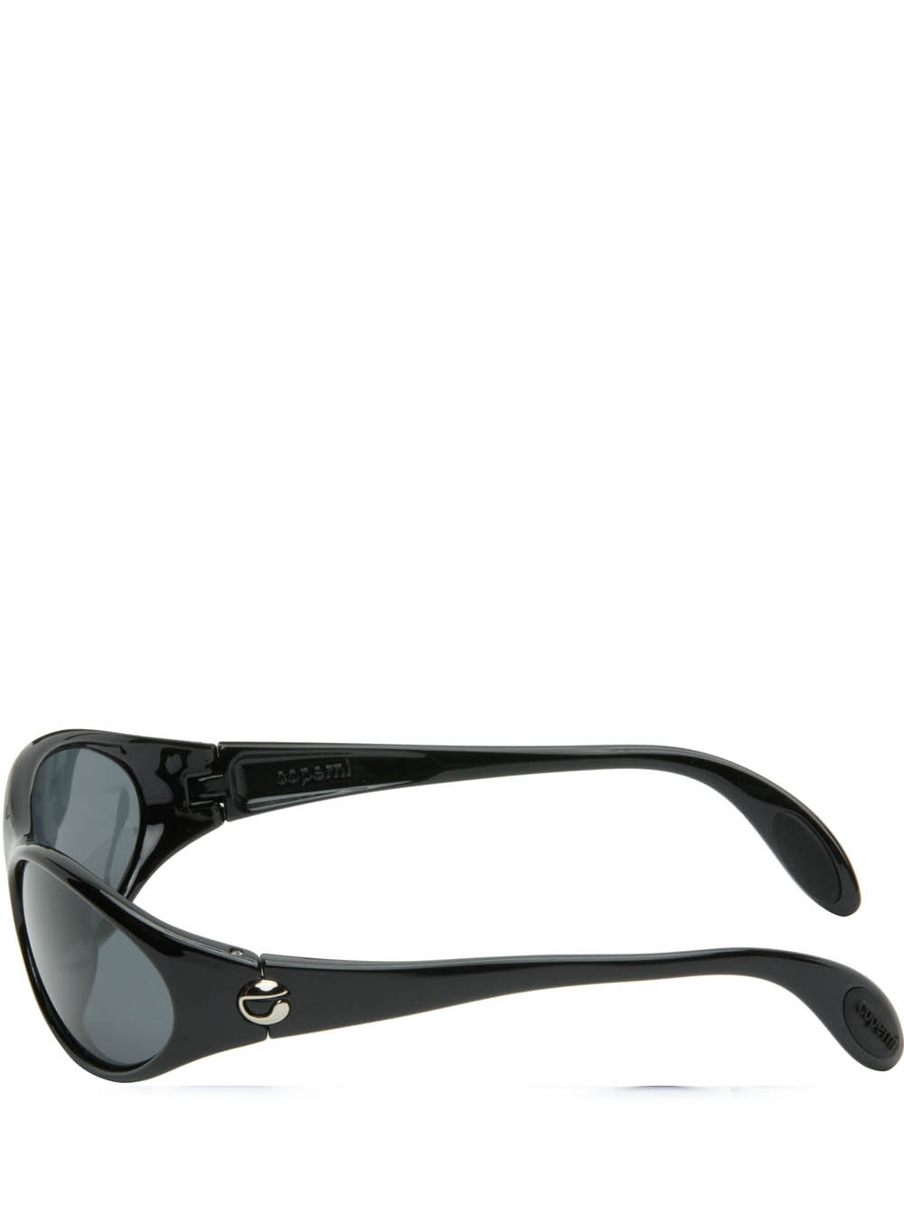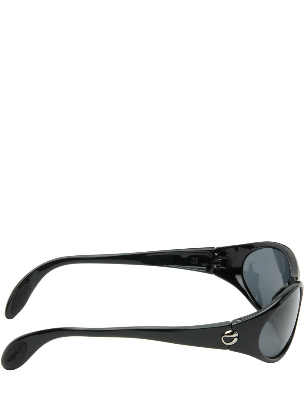 Black Coperni Cycling glasses in acetate with nose pads, curved temple tips and side logo.