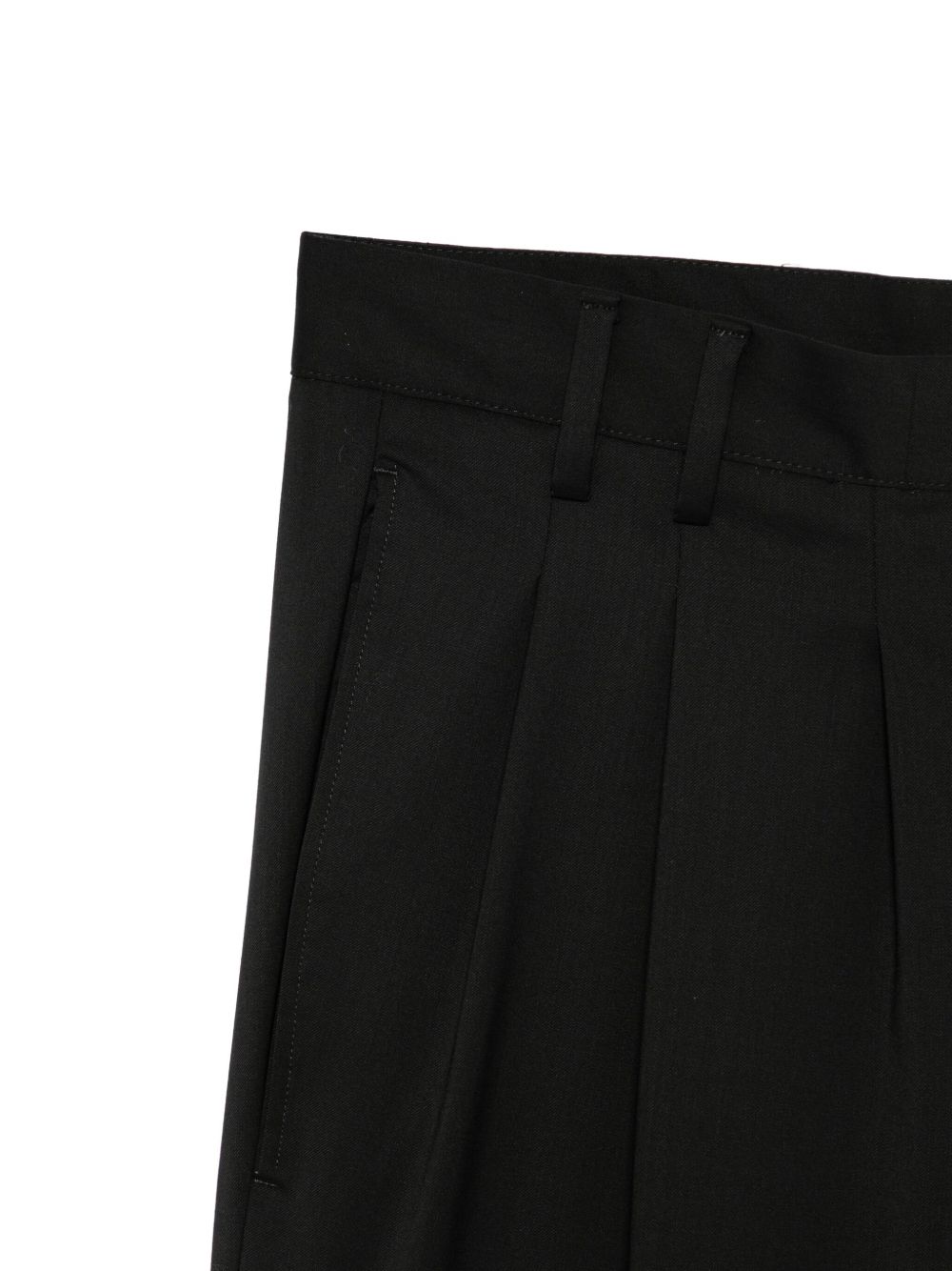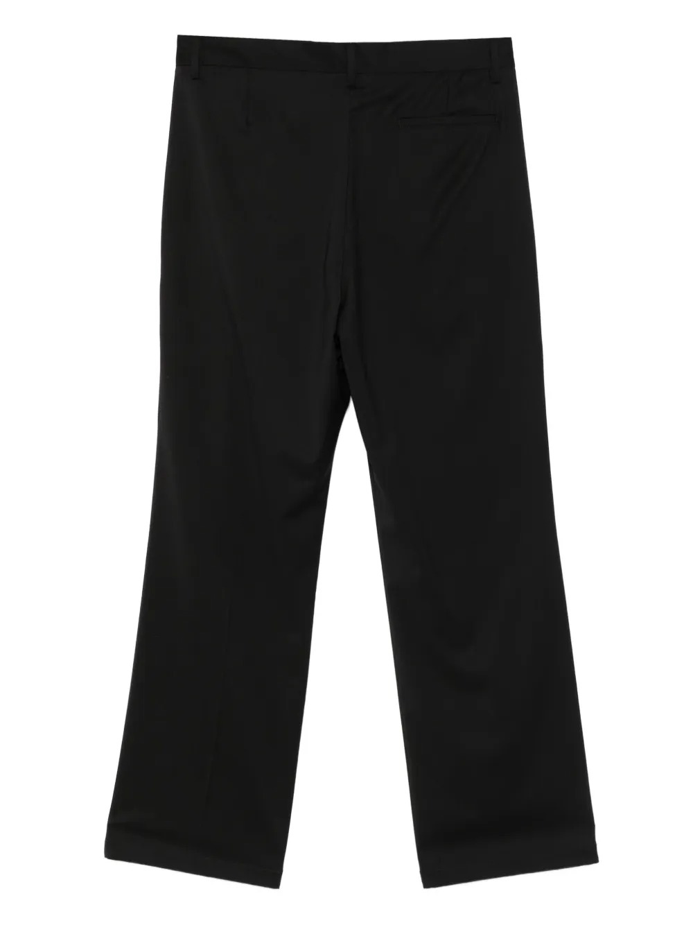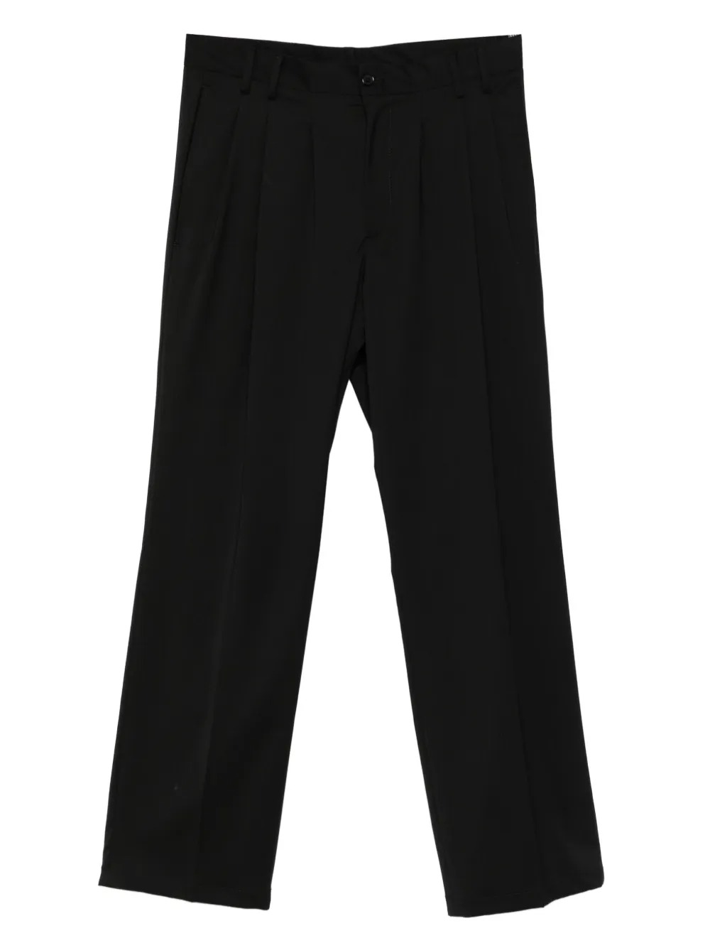 Norrie Timisoara black wool trousers by Costumein with concealed zip and button closure, two side welt pockets, back pocket with flap and pleated details.