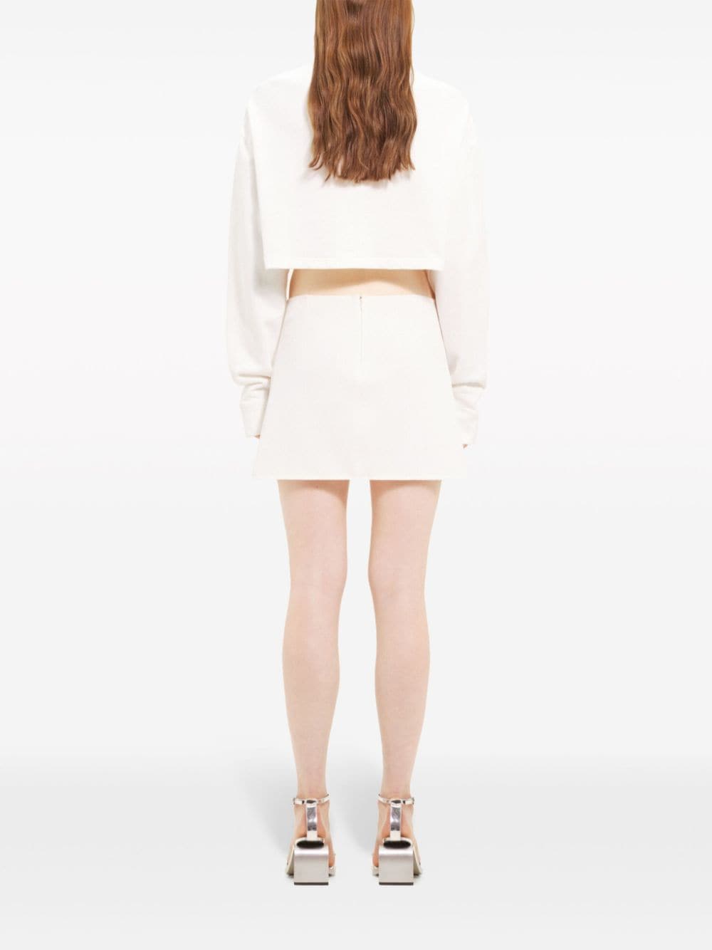White Cocoon Fleece Cropped sweater by Courrèges with crewneck, tone-on-tone AC logo and straight hem.