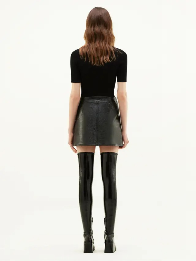 Courrèges Reedition Short Sleeves black viscose sweater with ribbed knit detailing