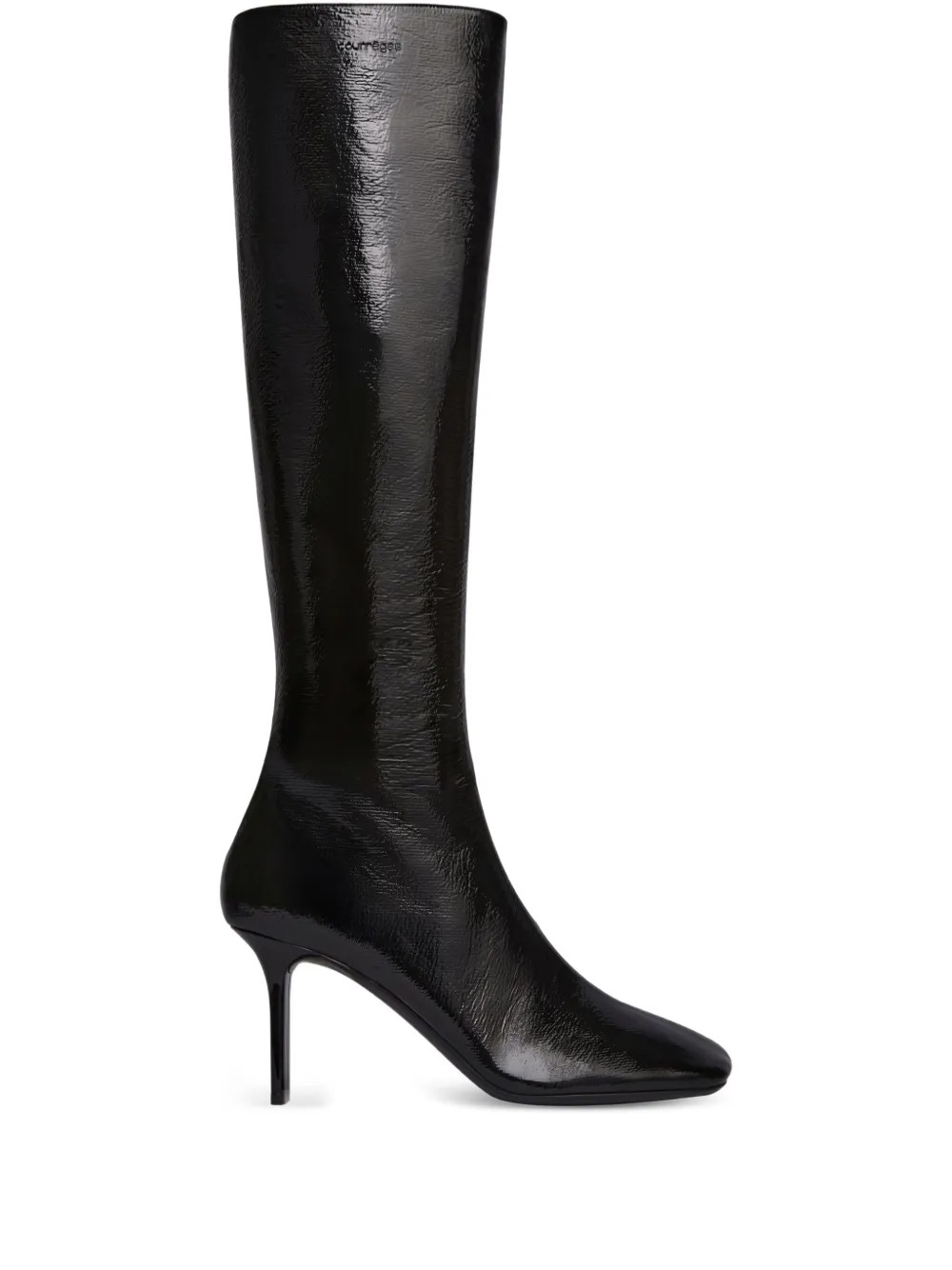 Courrèges Square Toe boots in cotton and polyurethane with square toe, knee height, and wide heel.