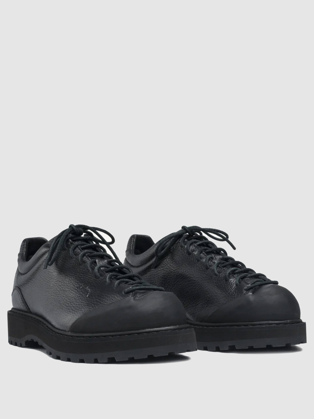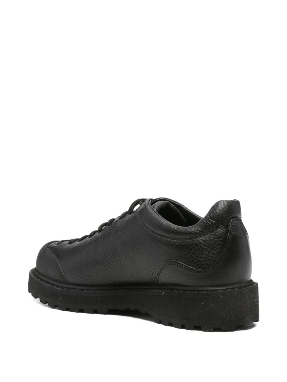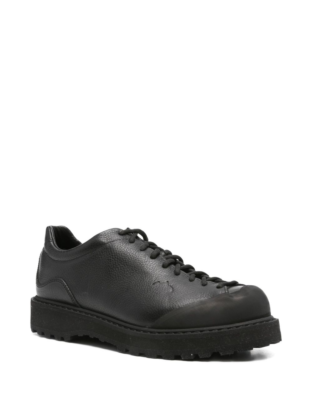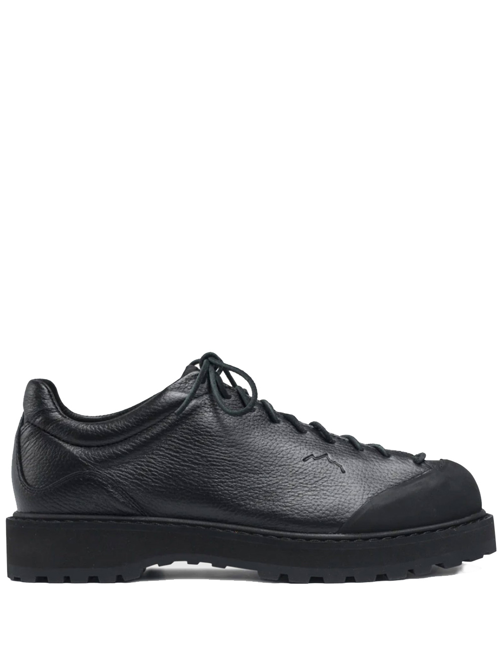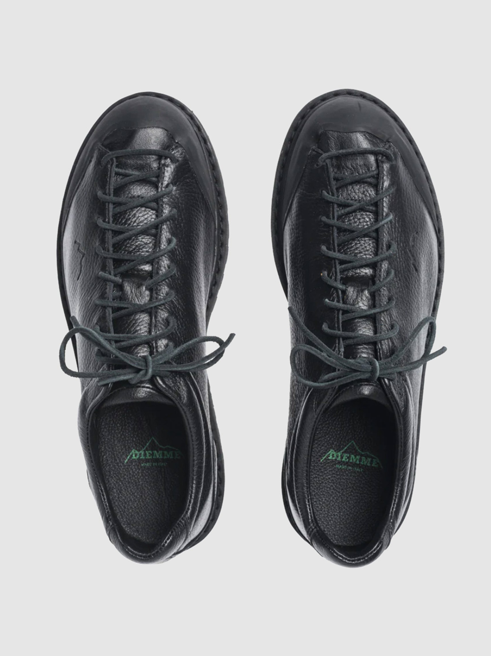 Black Ampezzo ankle boots by Diemme with textured leather, a lace-up front fastening, an inset design, an engraved logo tab, an engraved side logo, a rubber toe cap, a round toe, a leather insole with a logo and a non-slip rubber sole.