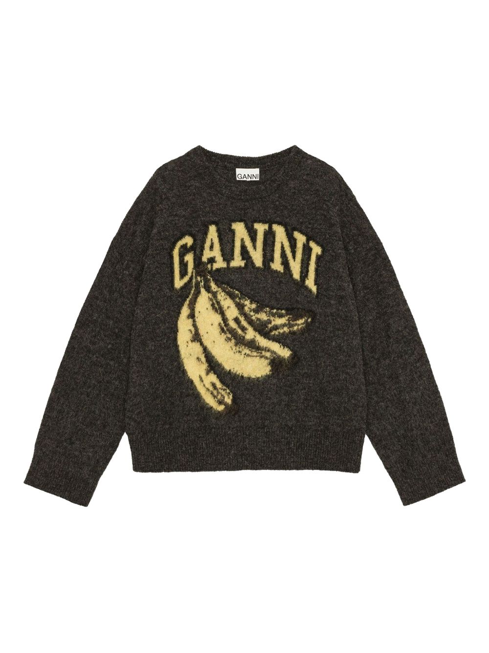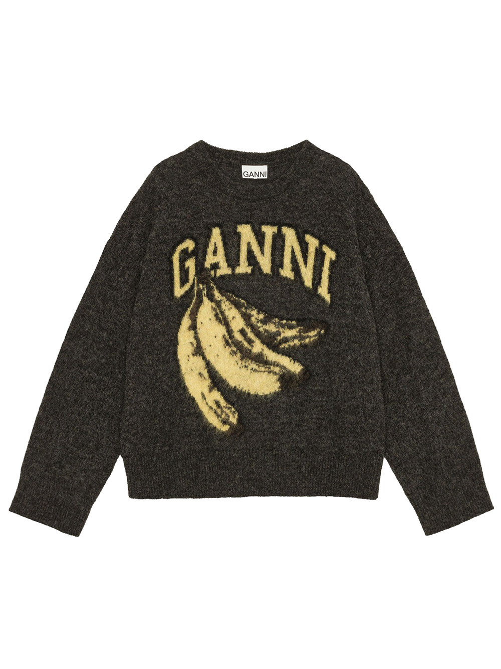 Gray Banana Graphic Sweater by Ganni inReplica Luxury Bag Shopping aca with crew neck, long sleeves, a front print, an oversized fit, and a straight hem.