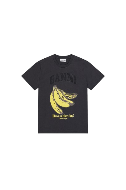 Black cotton Banana Graphic T-shirt by Ganni with crew neck, short sleeves, a front print and a straight hem.