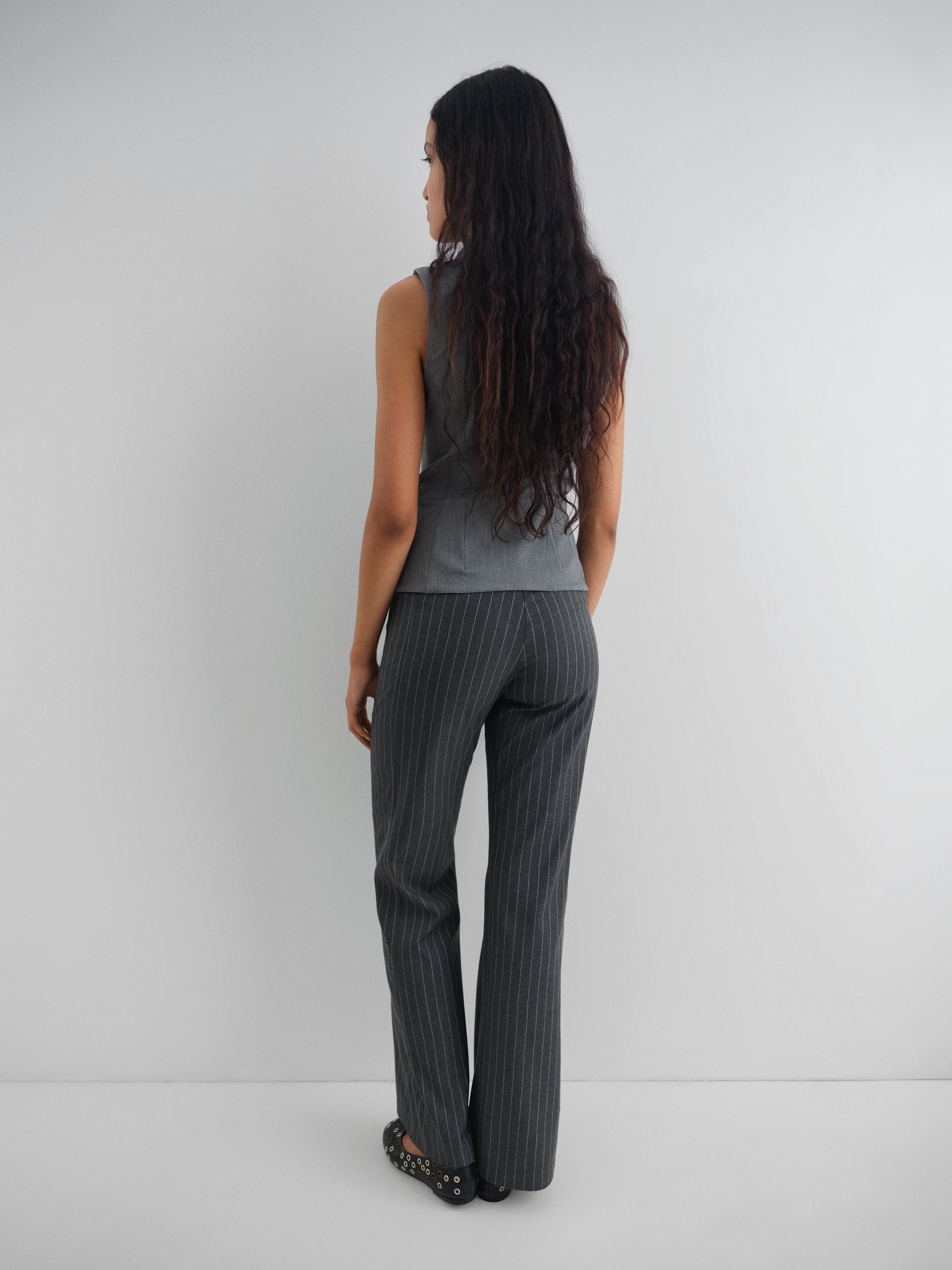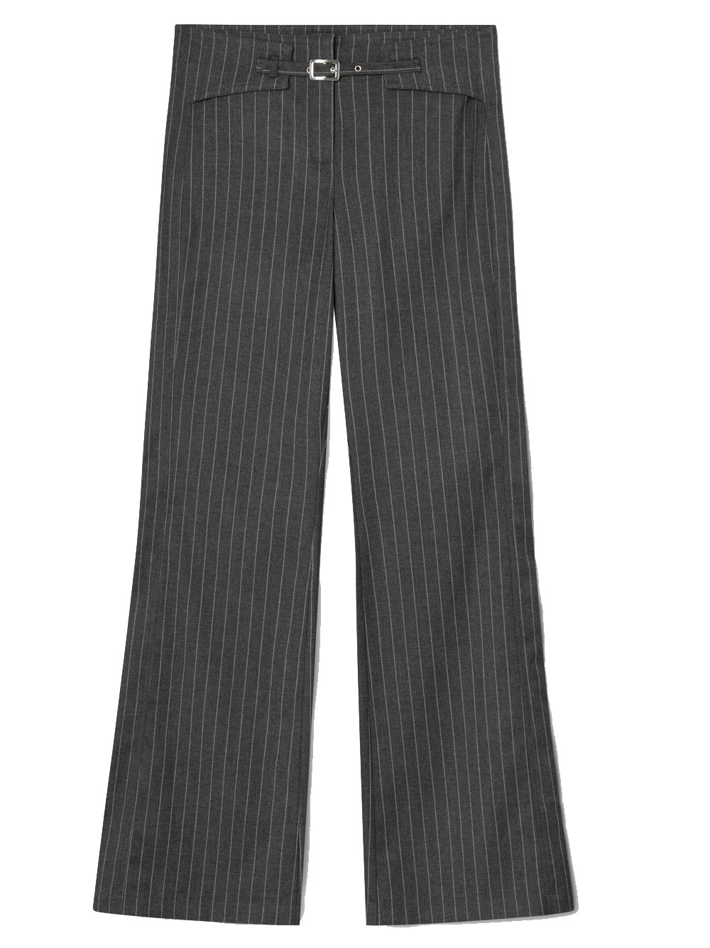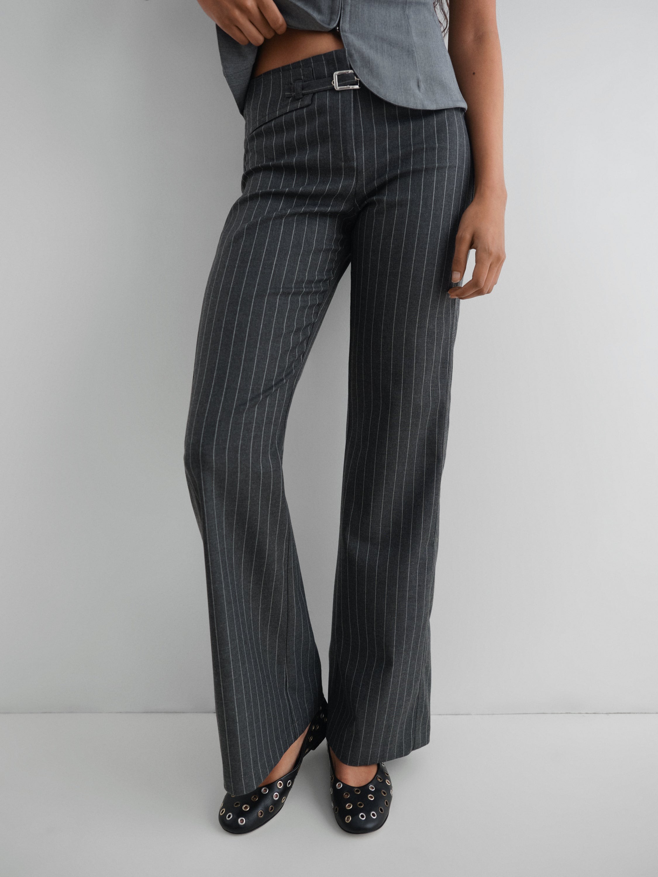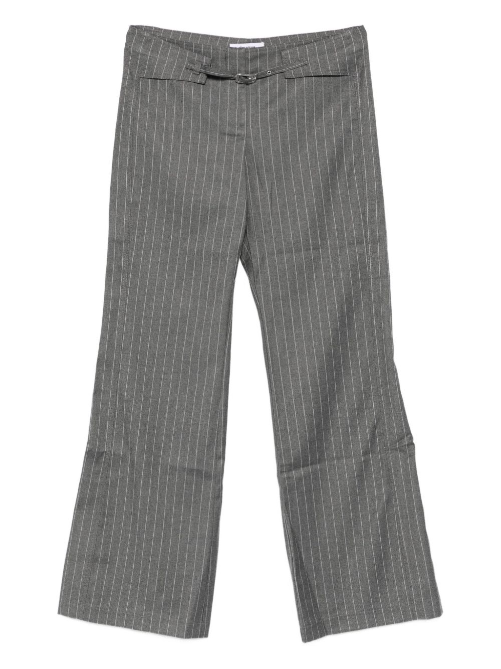 Gimaguas Tailored Nicole gray polyester pants with front zip closure, belt detail, and straight hem.