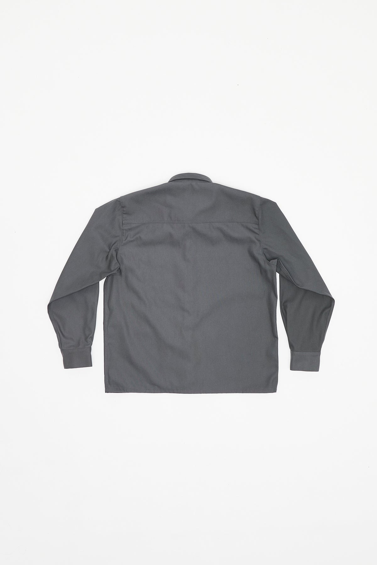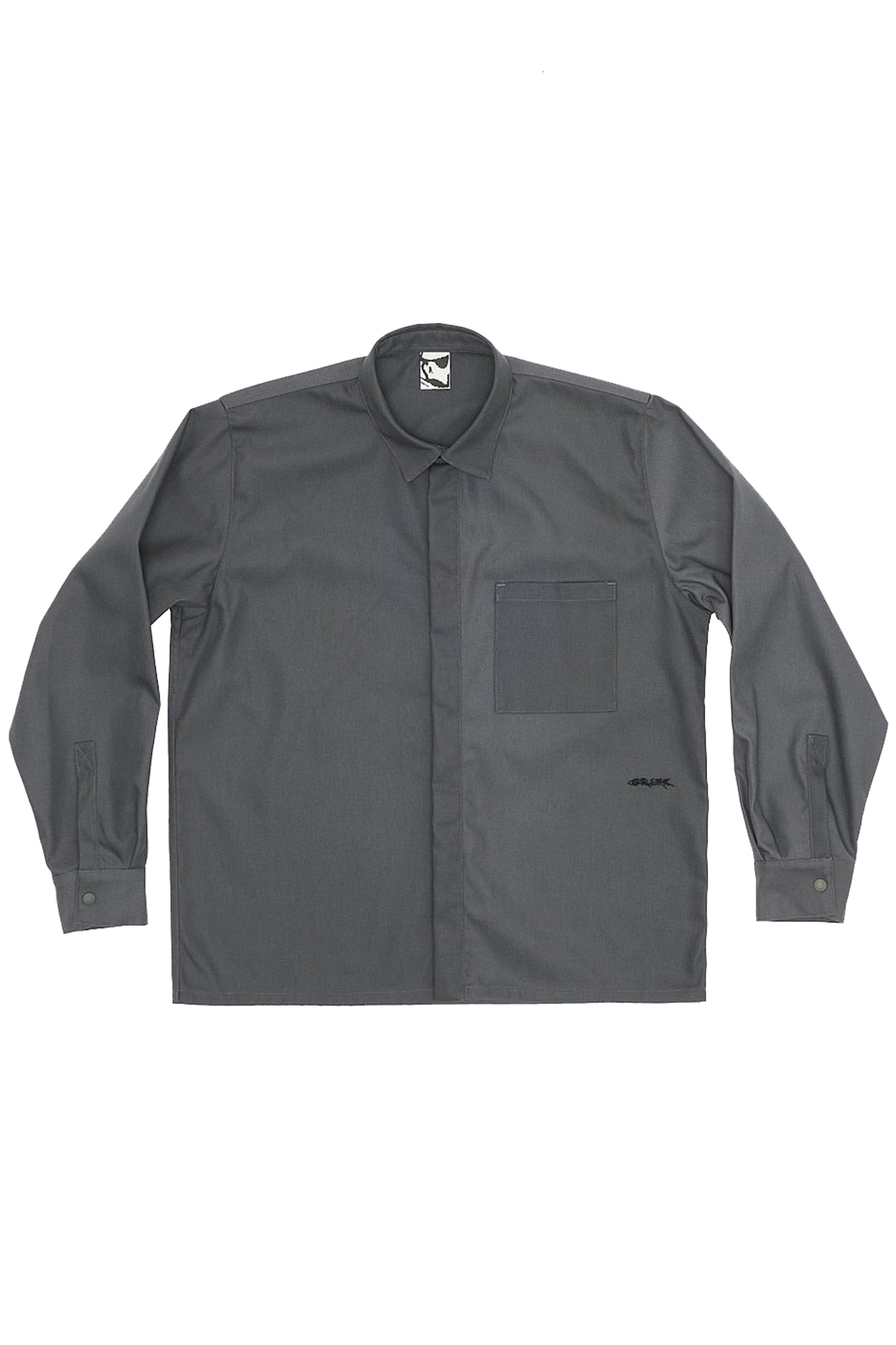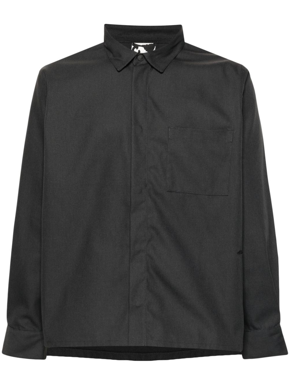 Gray Processing Overshirt shirt by GR10K in cotton with classic collar, concealed front button closure, side pocket, long sleeve, and straight hem.