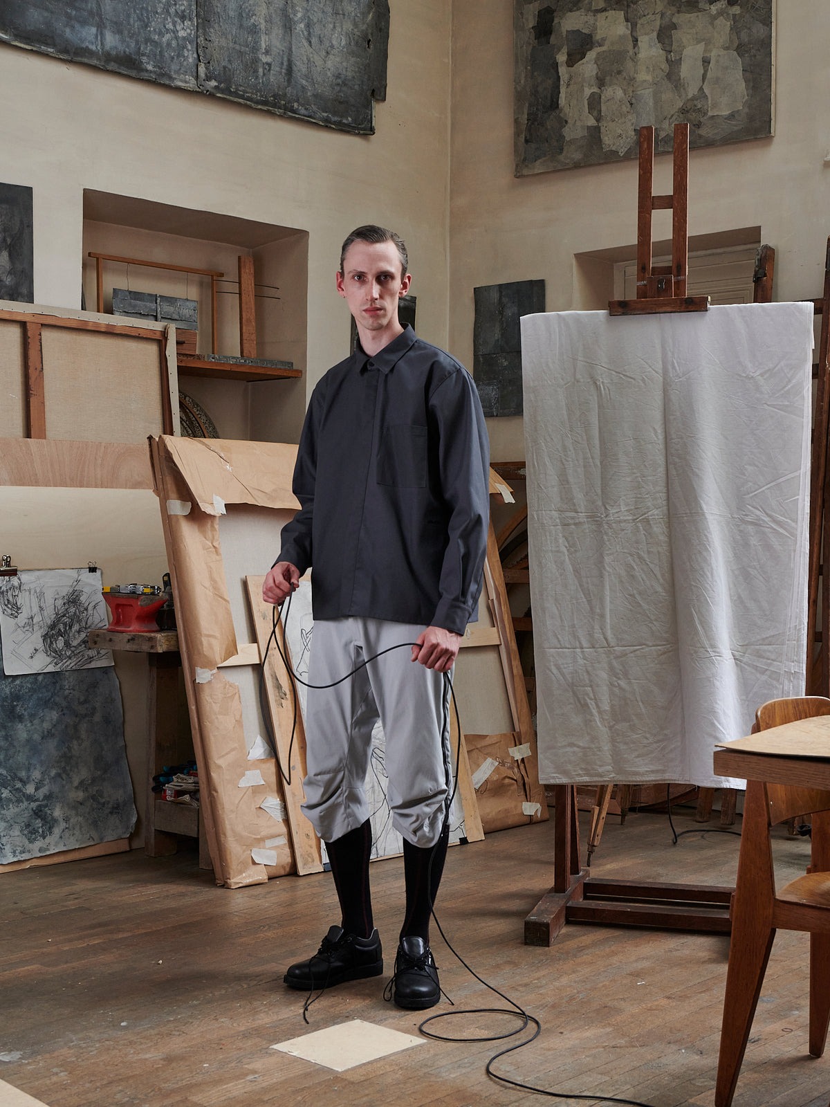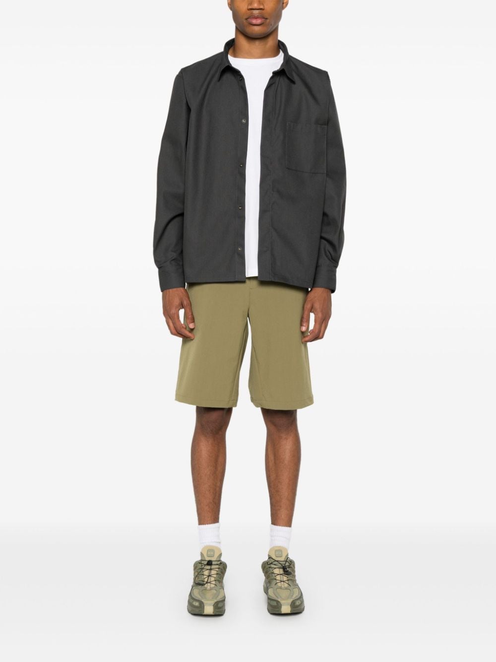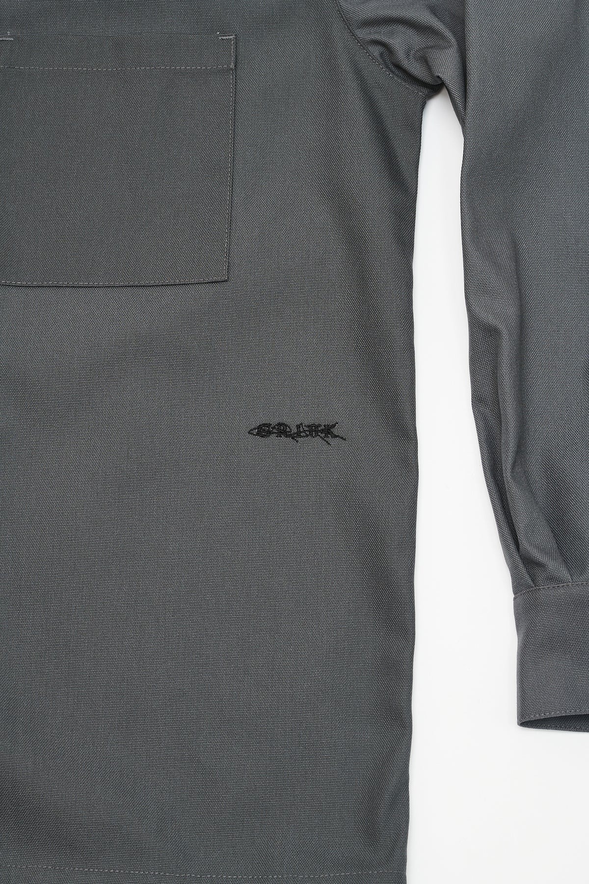 Gray Processing Overshirt shirt by GR10K in cotton with classic collar, concealed front button closure, side pocket, long sleeve, and straight hem.