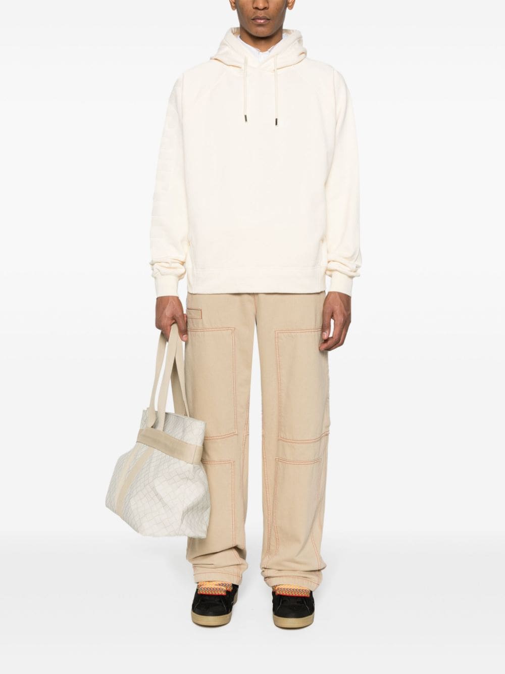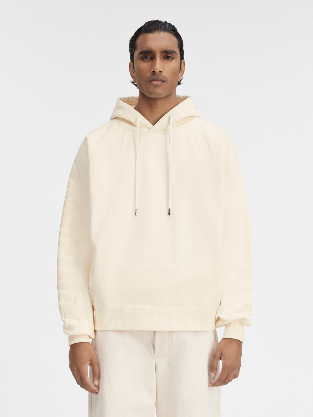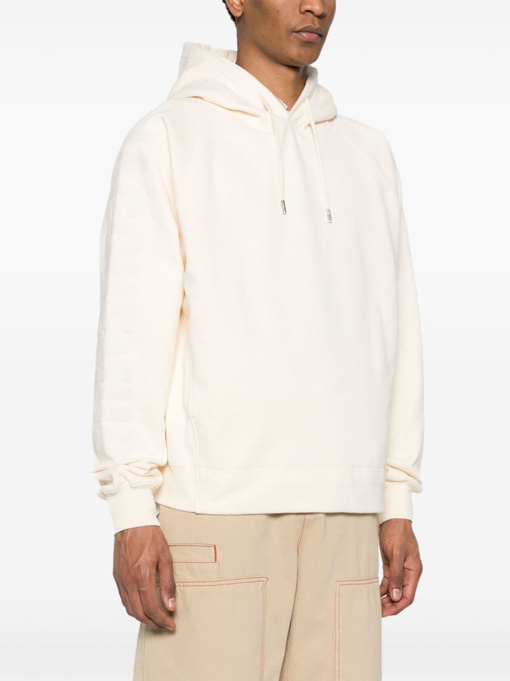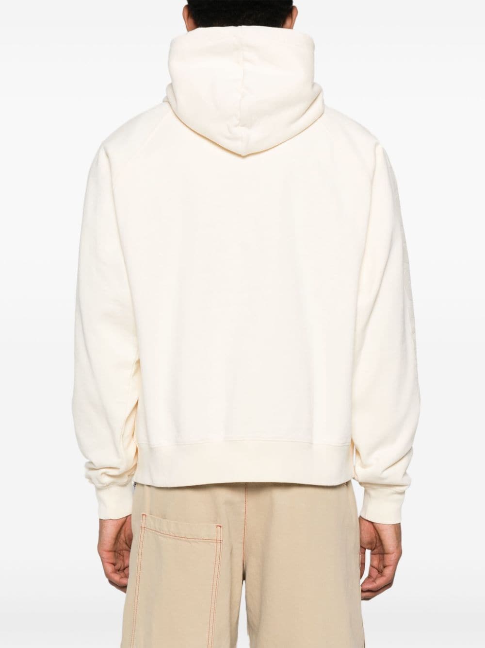 Beige Le Hoodie Typo by Jacquemus in cotton with hood, drawstring, ribbed finishes, logo printed on the sleeve, kangaroo pocket and straight hem.