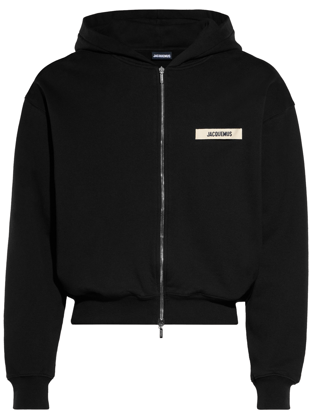 Black Le Hoodie Zip Gros Grain sweatshirt by Jacquemus in cotton with hood, front zip closure, ribbed trim, logo on the chest and straight hem.