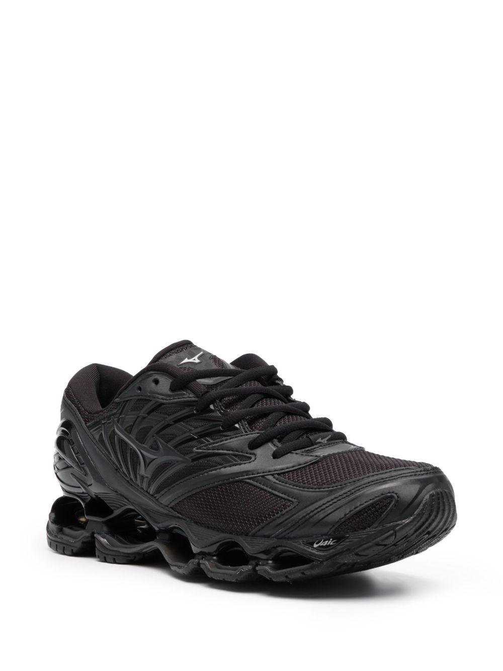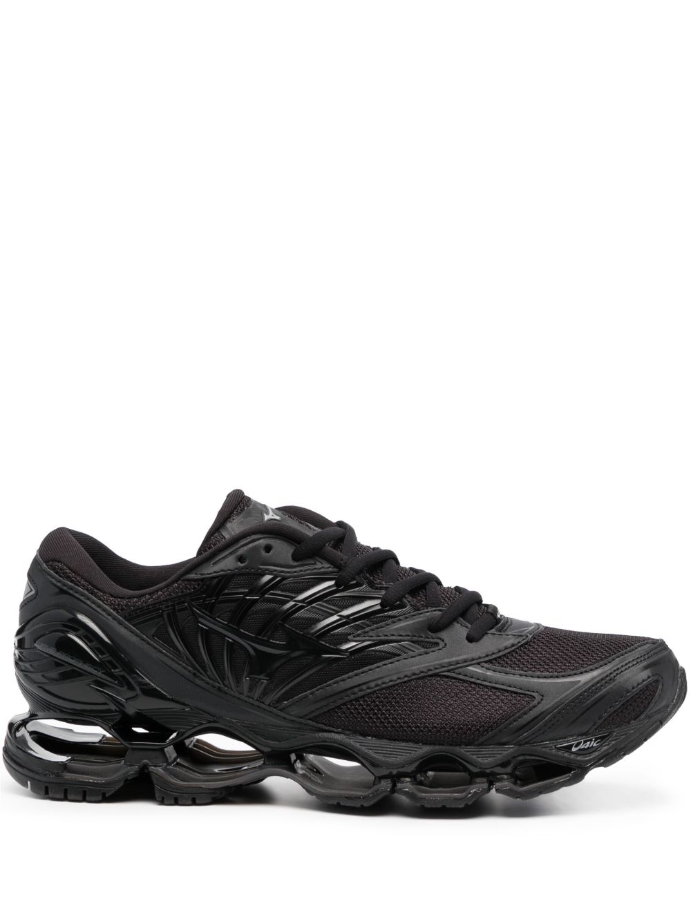 Black SL Wave Prophecy LS sneakers by Mizuno in suede with round toe, front lace-up closure, side logo, leather inserts, and 4 cm thick rubber sole.