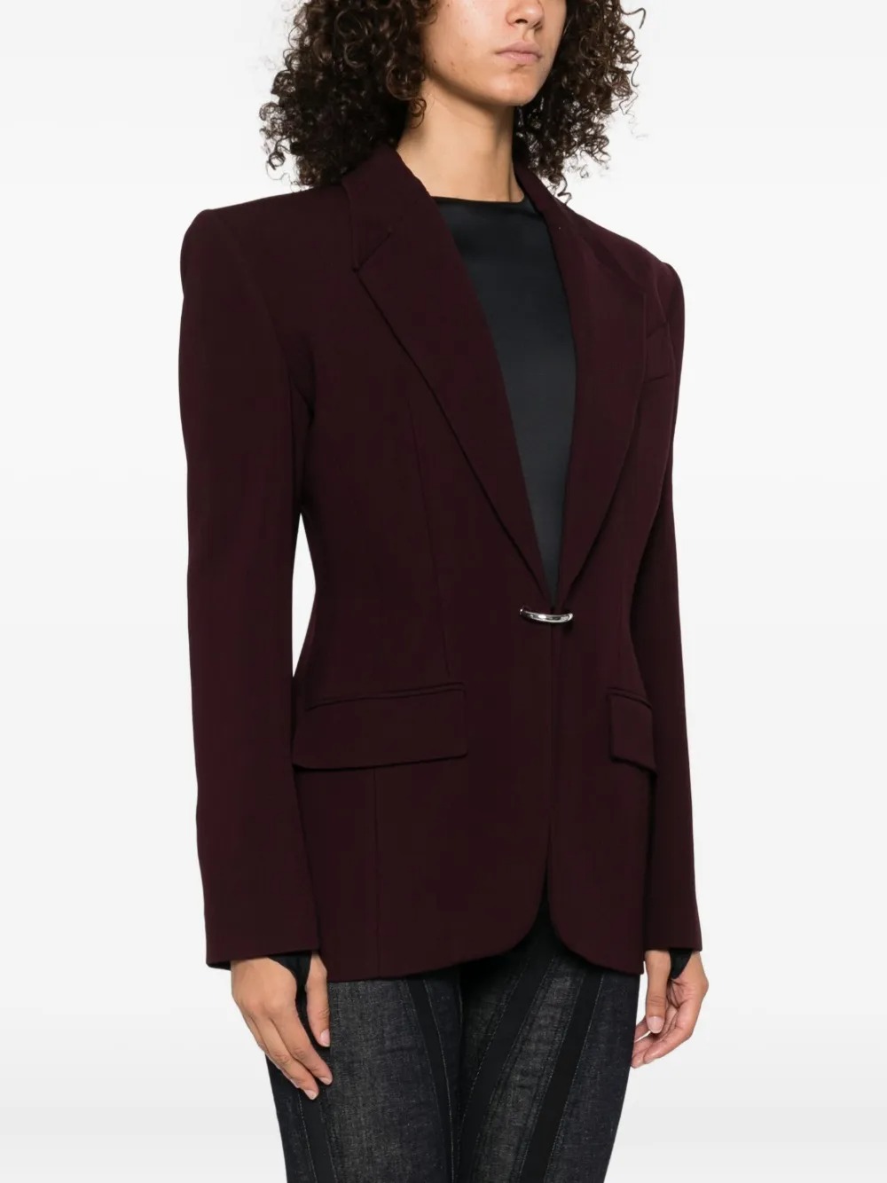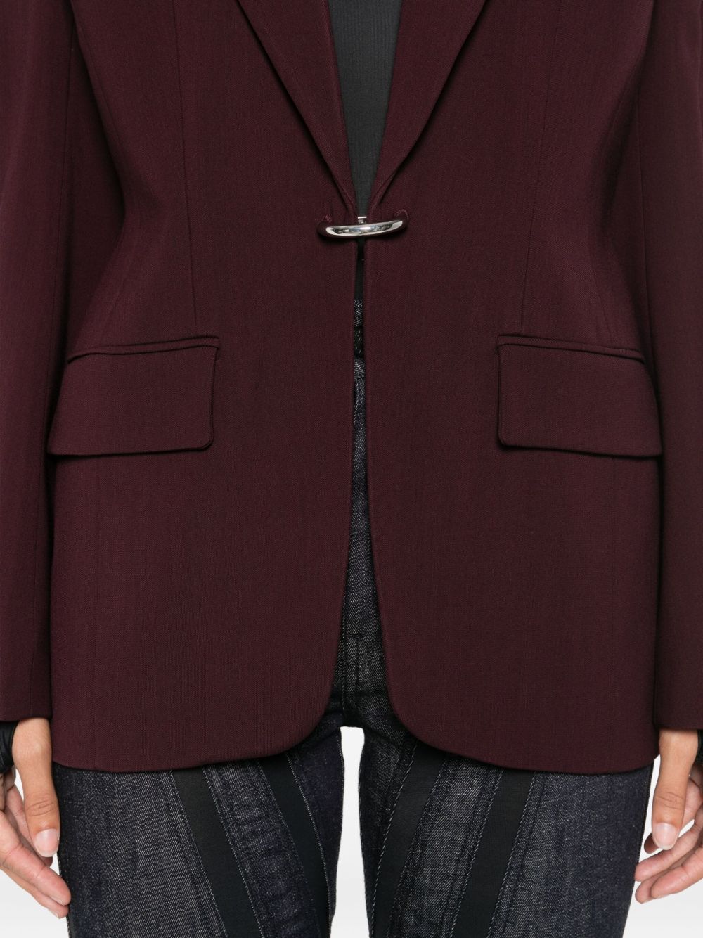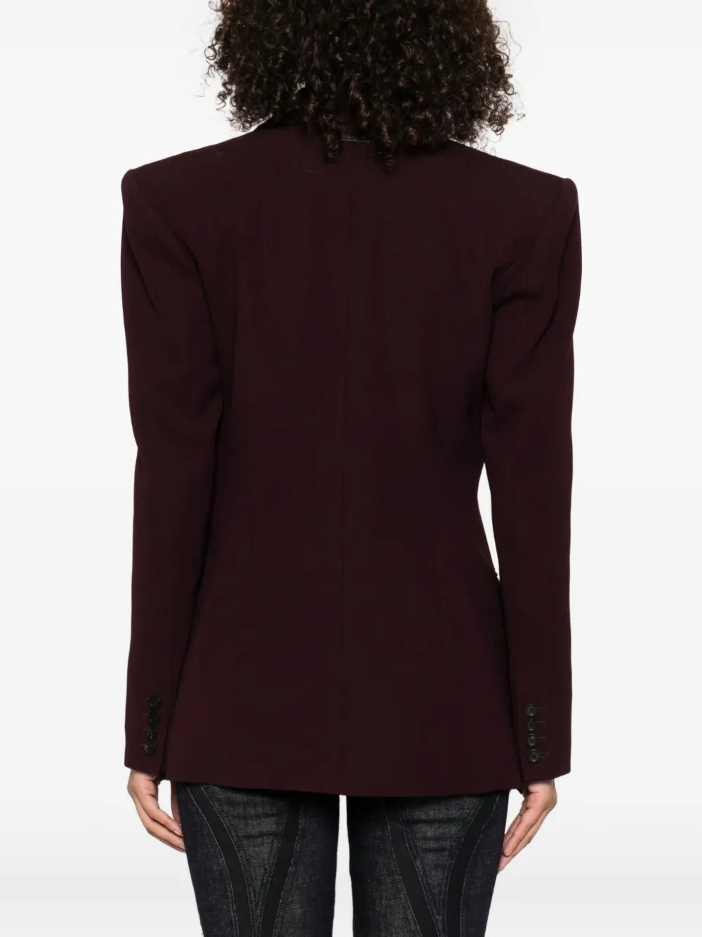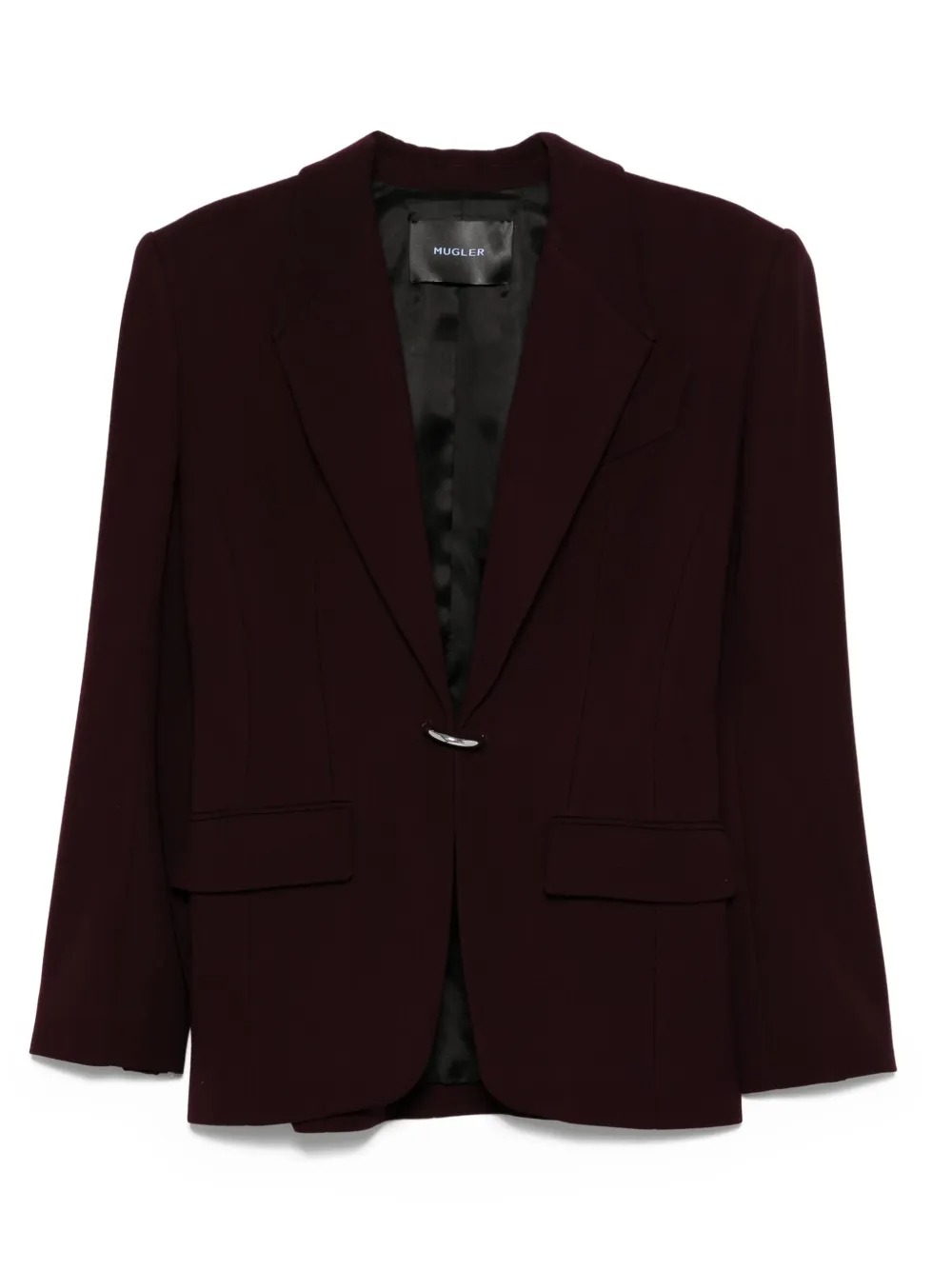 Burgundy Pierced viscose jacket by Mugler with single-breasted front fastening, long sleeves, flap pockets, a metal button fastening and a straight hem.
