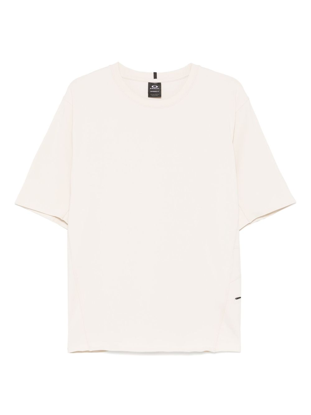 Ivory cotton T-shirt by Oakley with crew neck, short sleeves, a side pocket with concealed zip, a shoulder seam with reflective tape and a back logo.