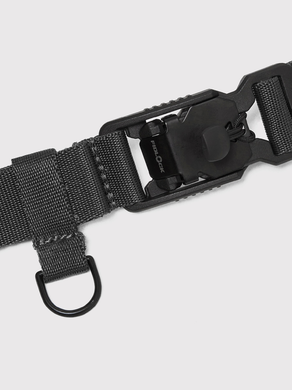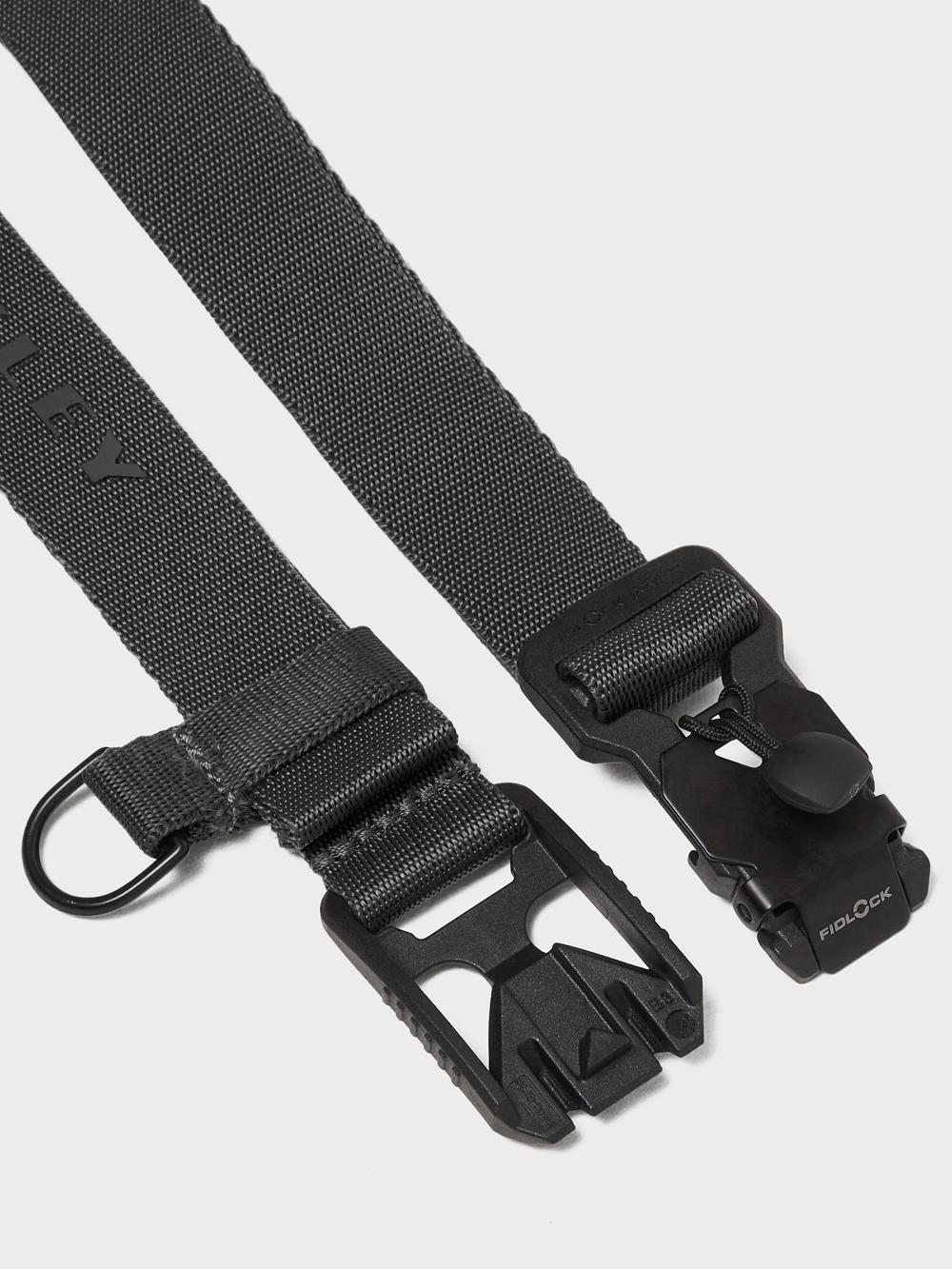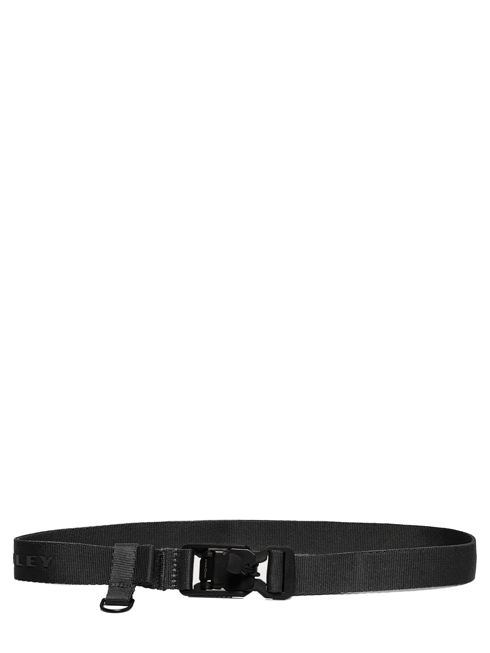 Oakley's black polyester Latitude Web Belt with 25mm Fidlock buckle fastening, woven workmanship, metal loop and 3D TPU logo.
