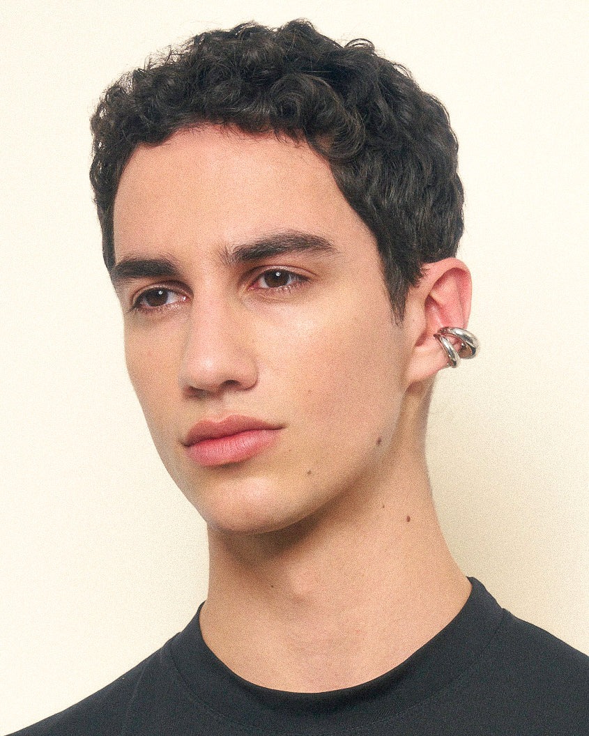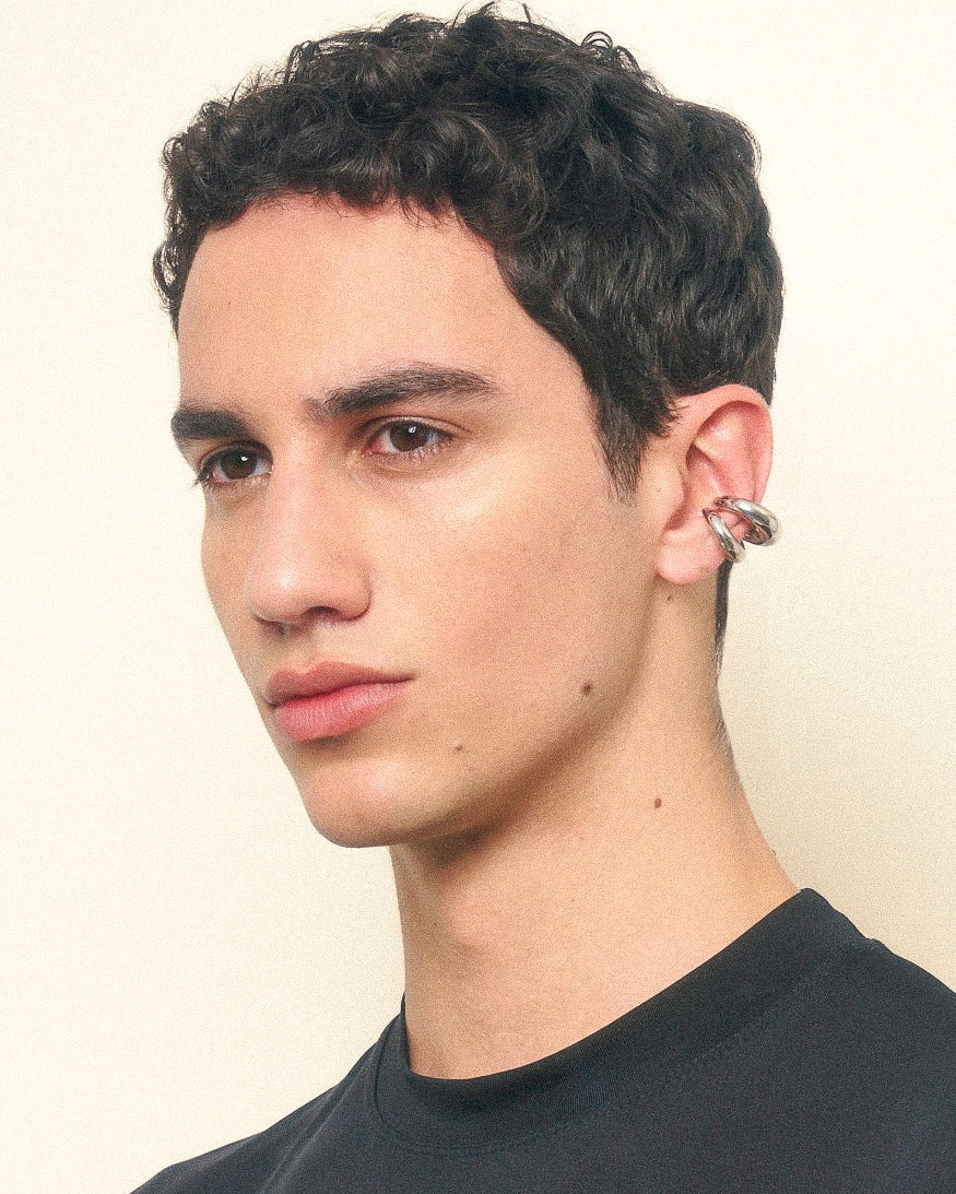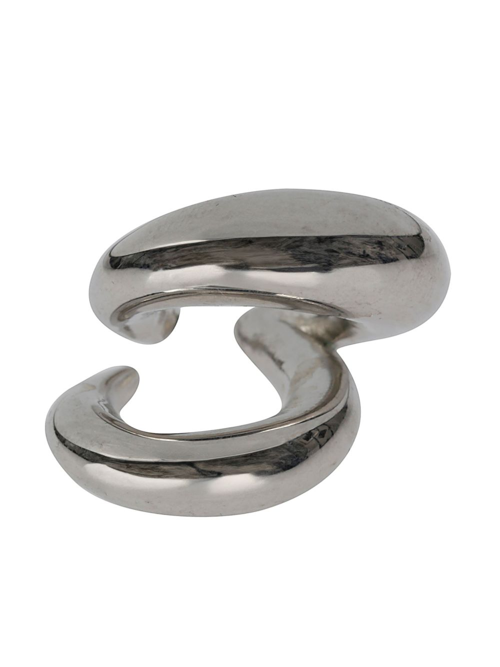 Silver-coloured Blow Up Stellar Ear Cuff earrings by Panconesi in copper with circular design and engraved logo