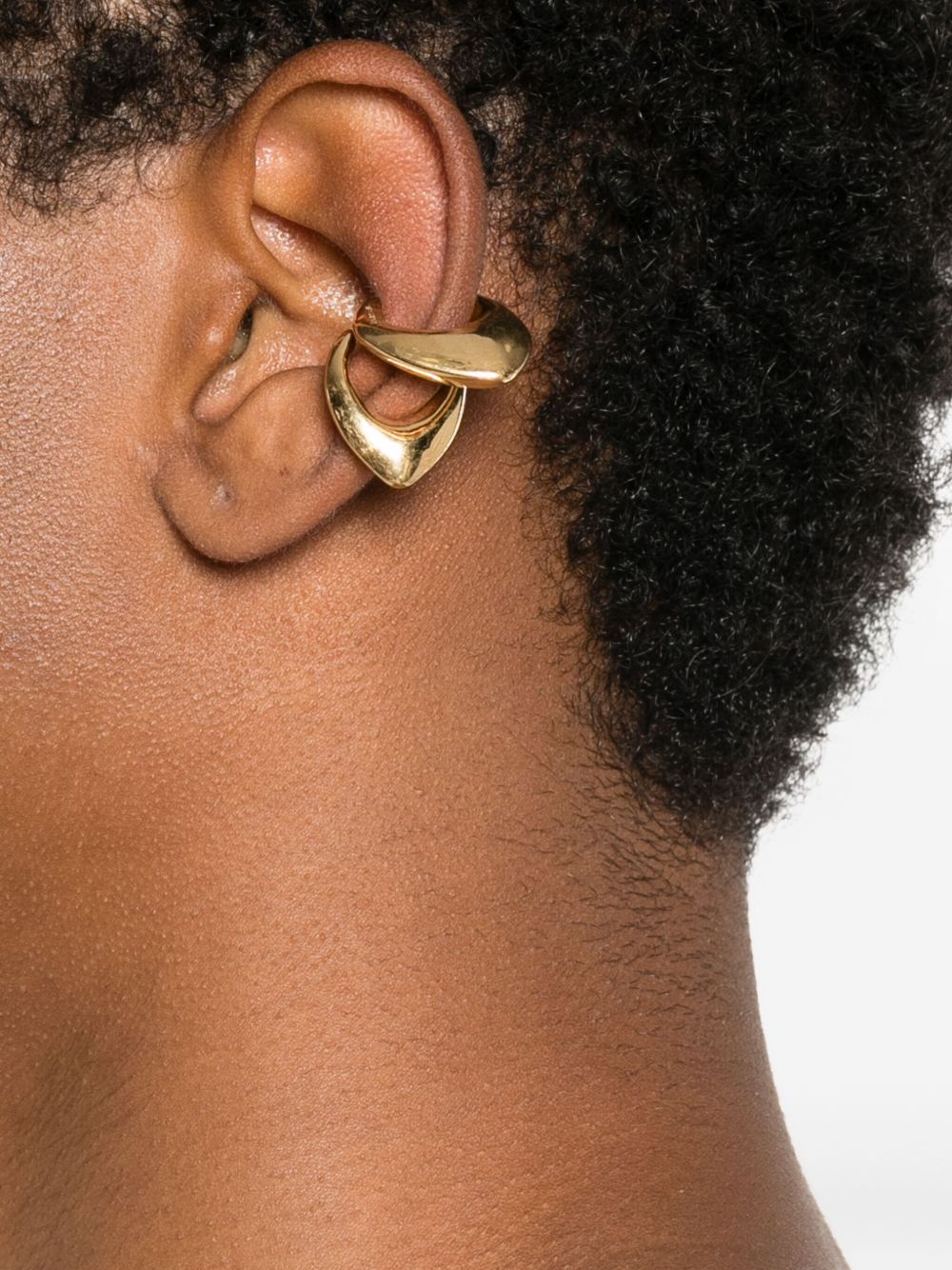 Panconesi copper Spada Ear Cuff earrings with circular design and engraved logo.