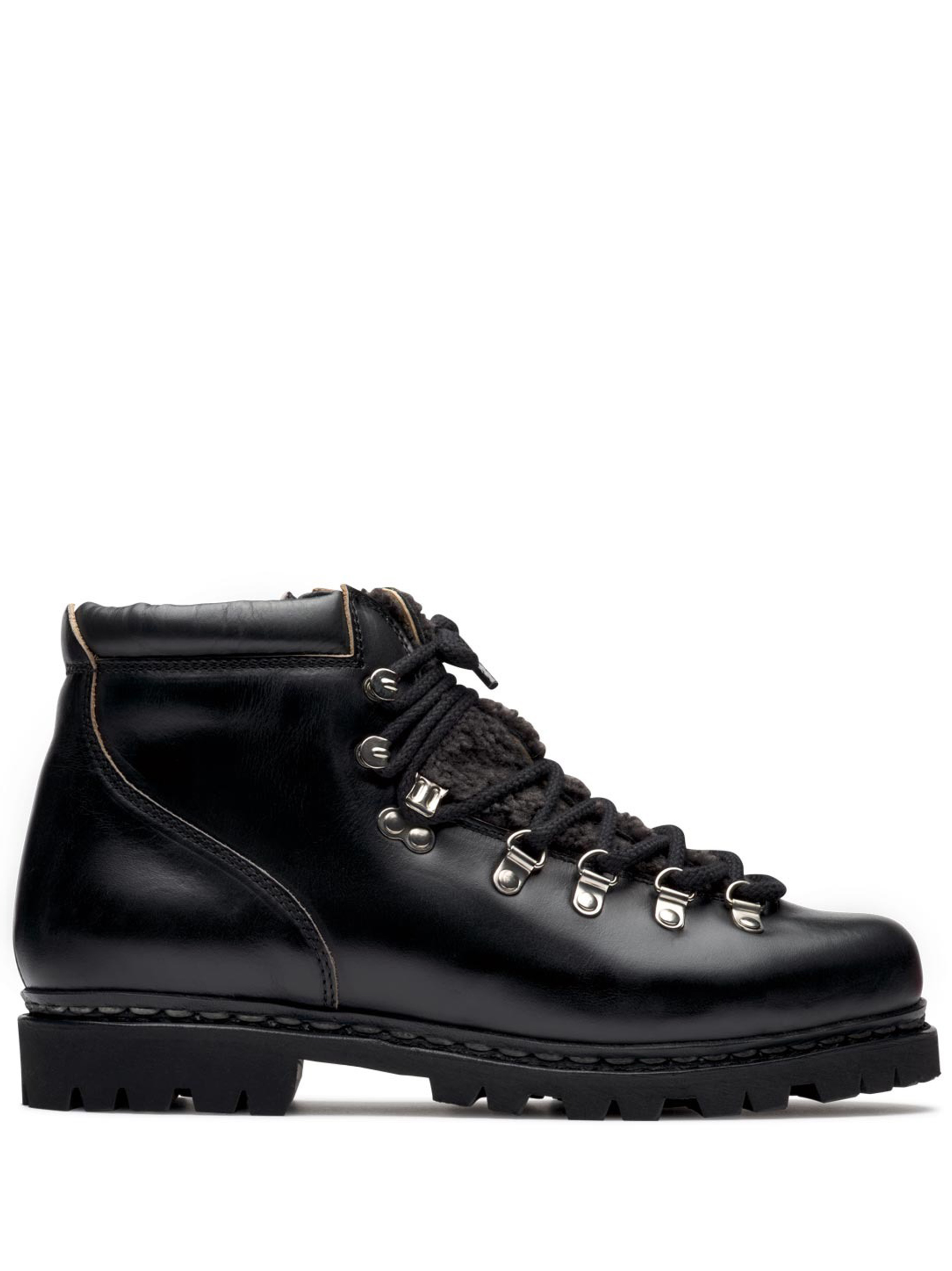 Black Avoriaz leather lace-up boot by Paraboot wirth round toe, a lace-up front closure and a notched rubber sole.
