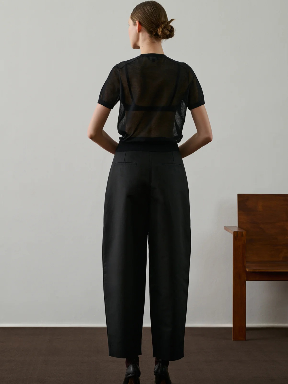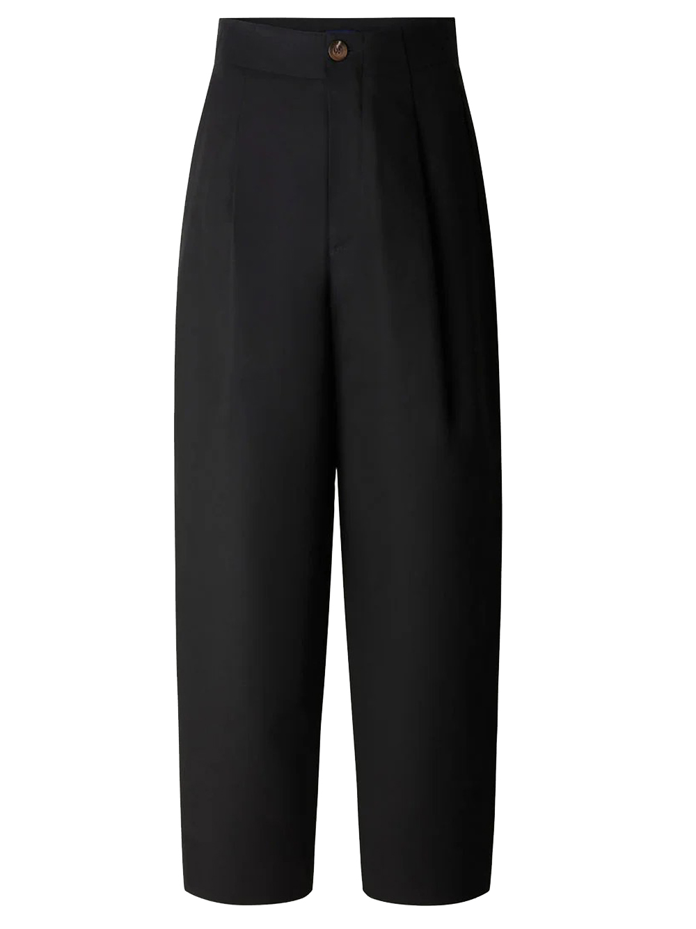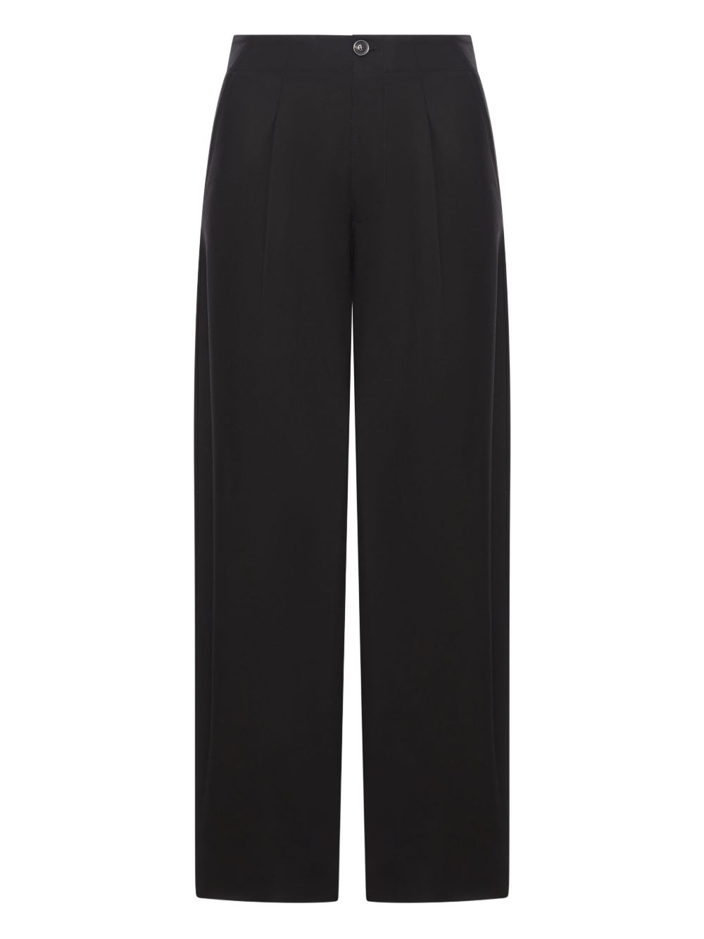 Black Daley pants by Soeur in cotton with button closure and hidden zipper at the waist, side pockets, and straight hem.