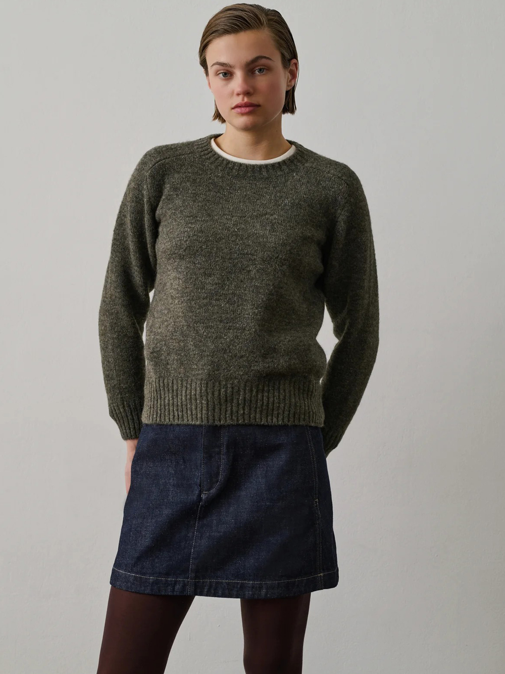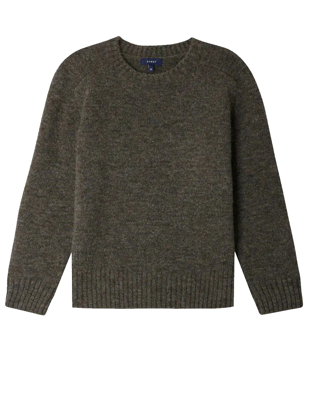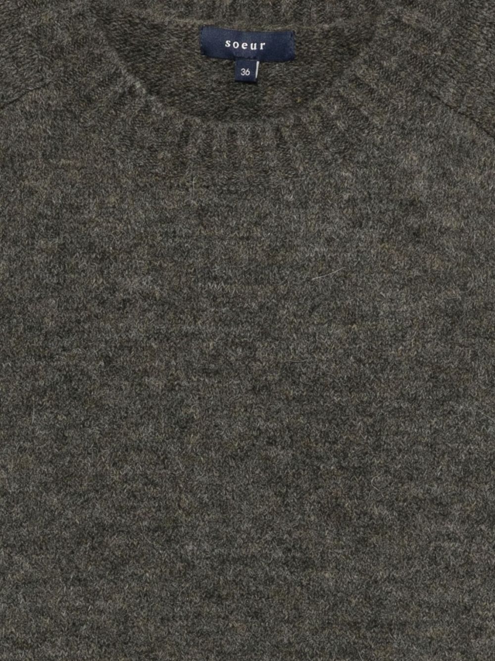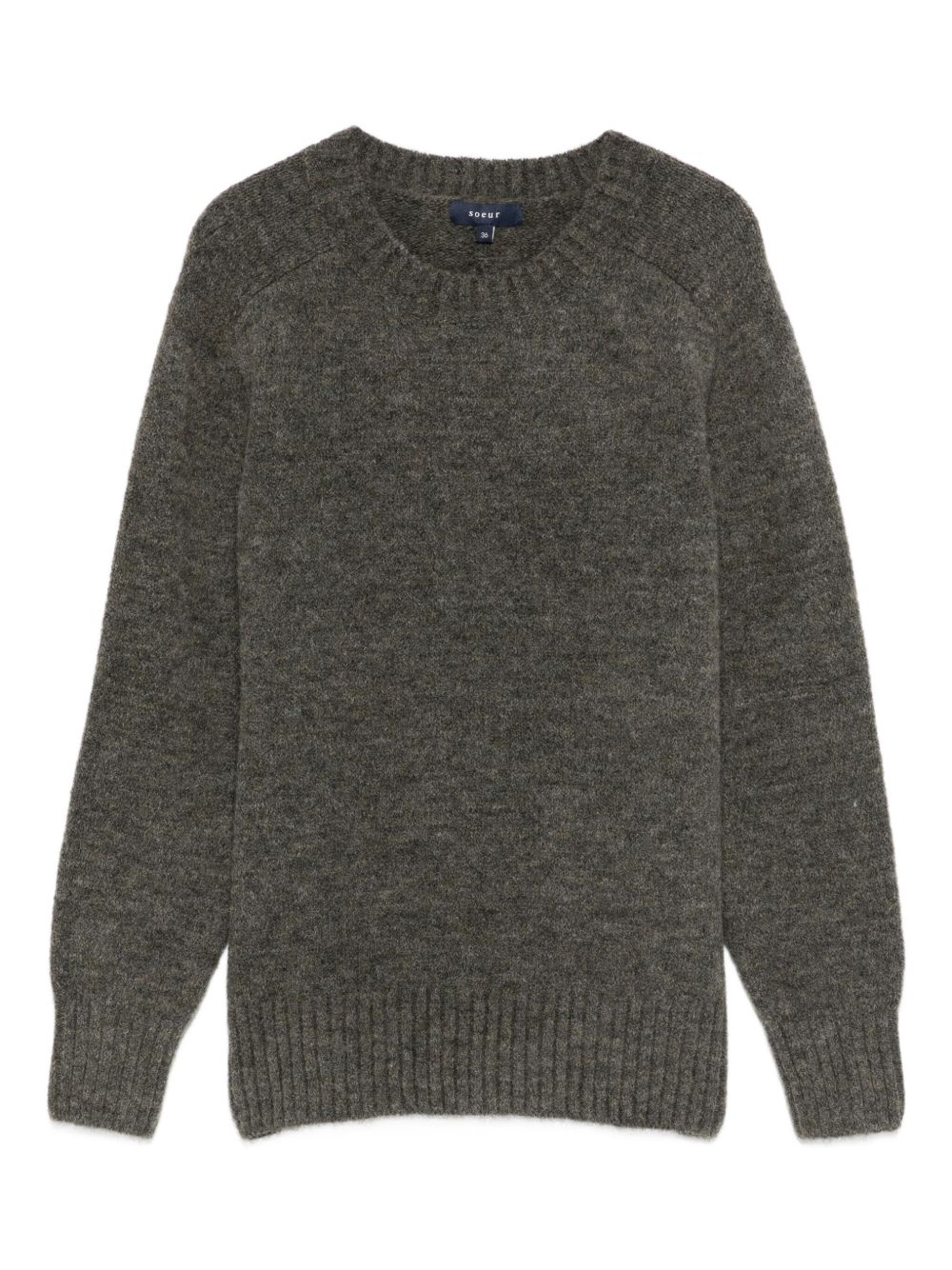 Envier gray melange pullover by Soeur in polyamide with crew neck, long sleeves, ribbed hem, and ribbed cuffs.