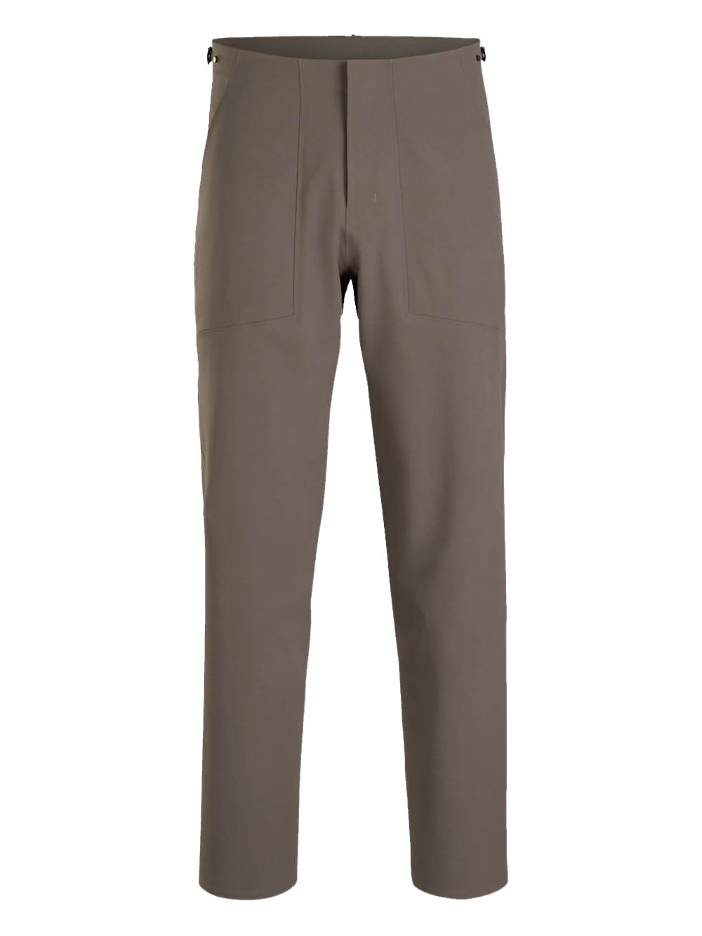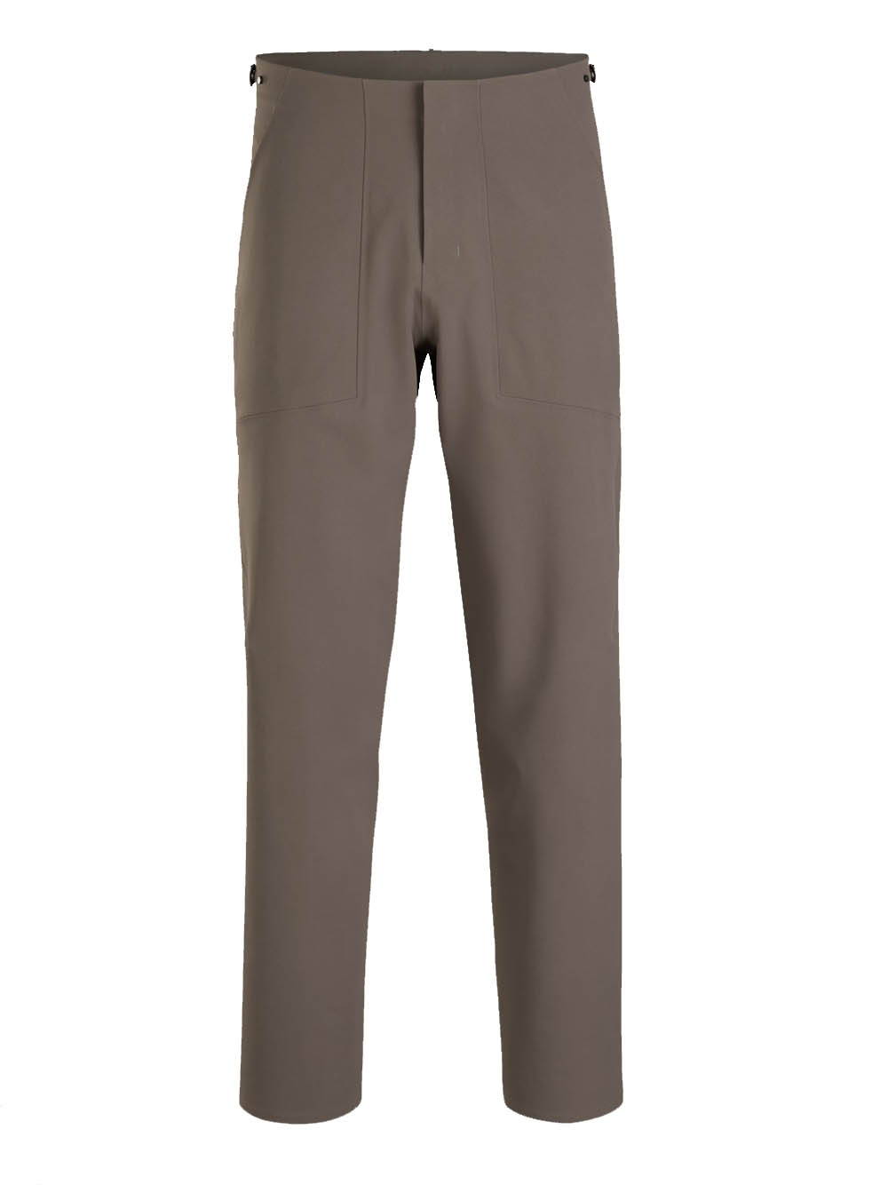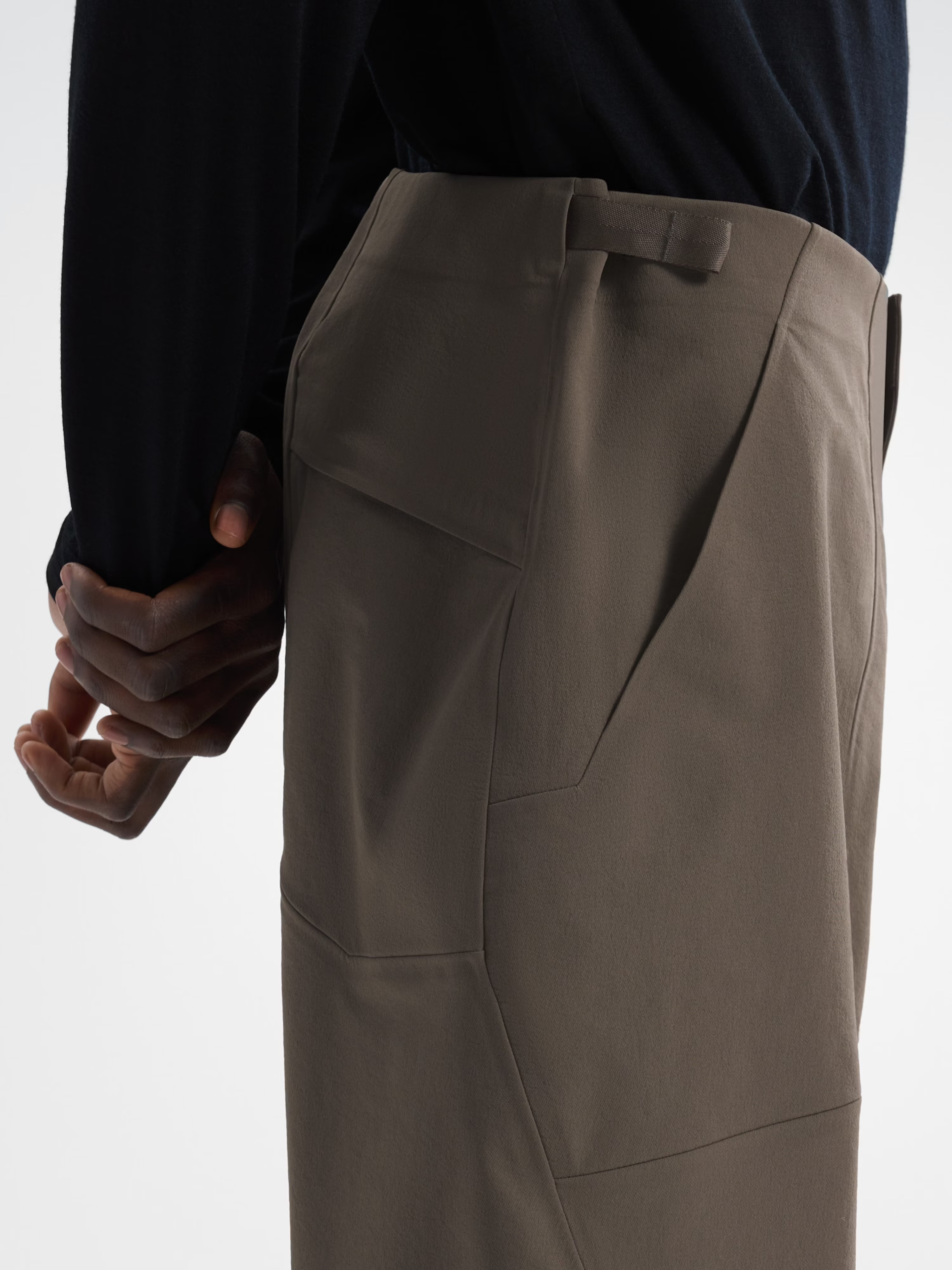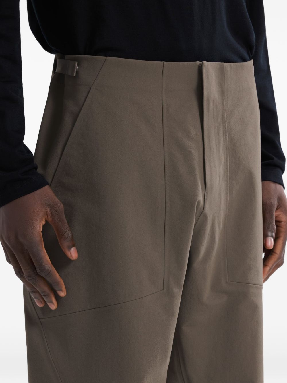 Light brown Dionde MX pants by Veilance in nylon with hidden front closure, shaped pockets, and straight hem.