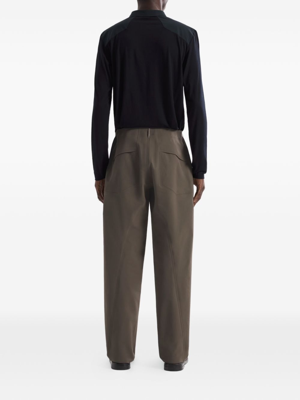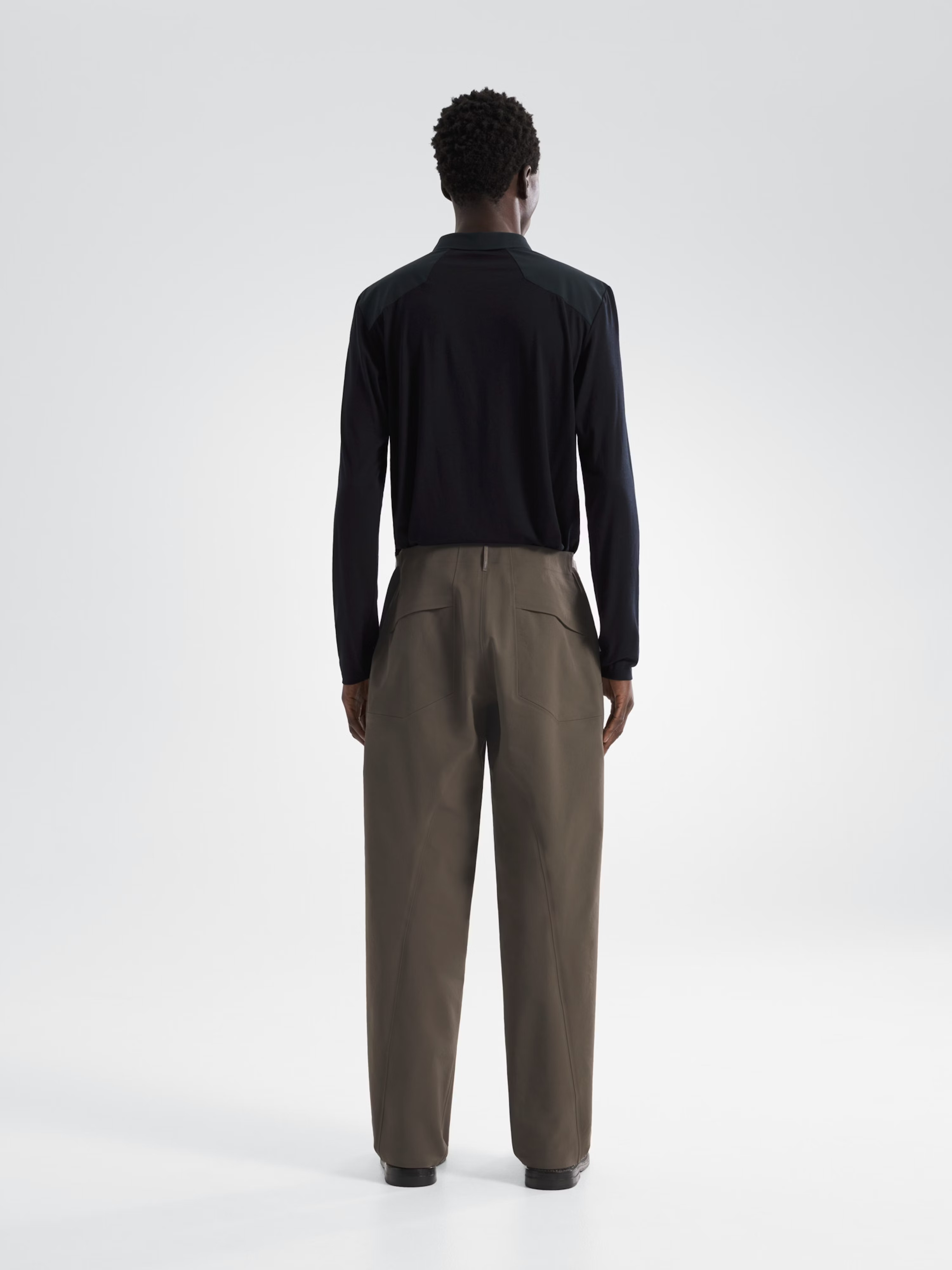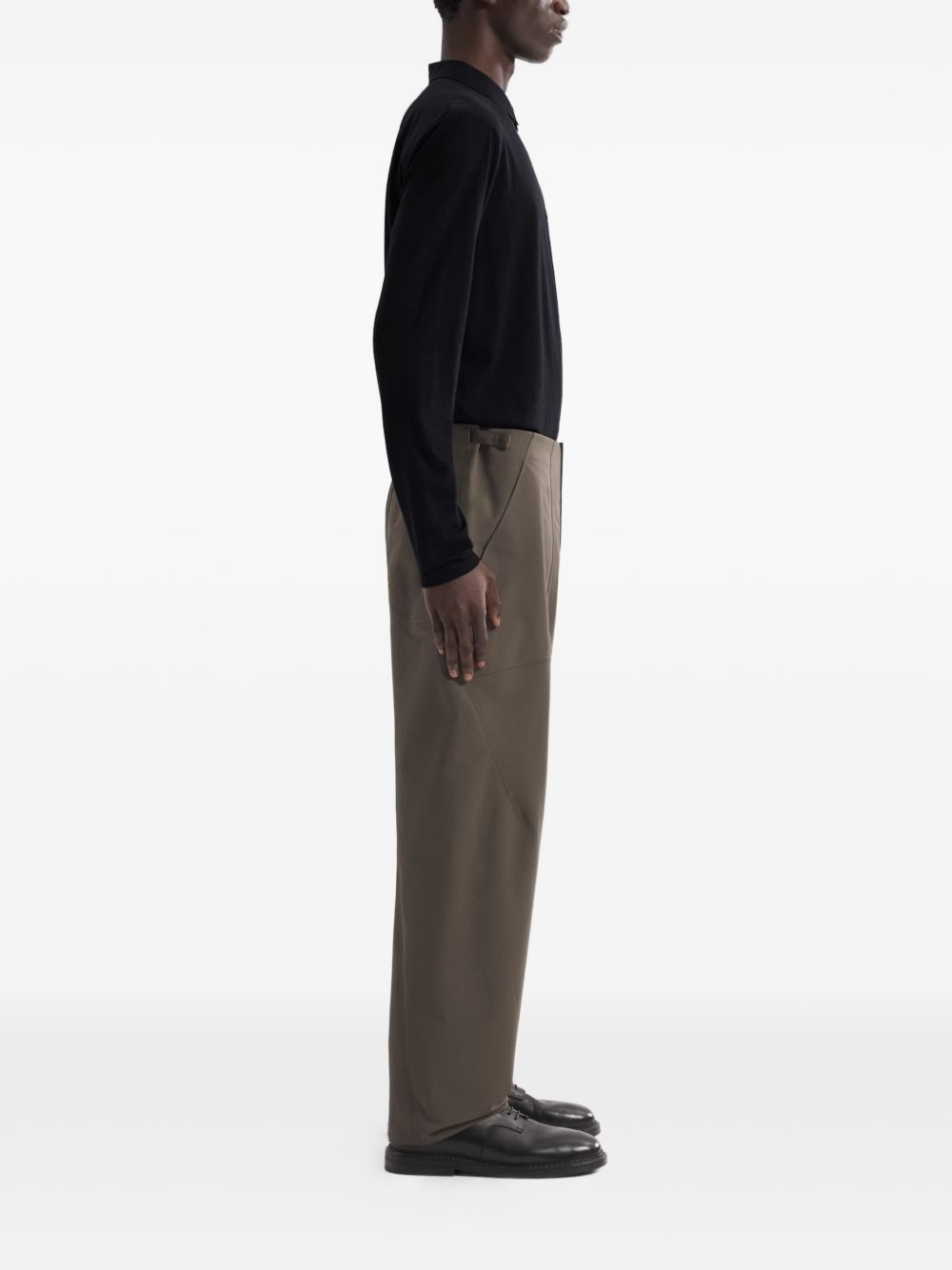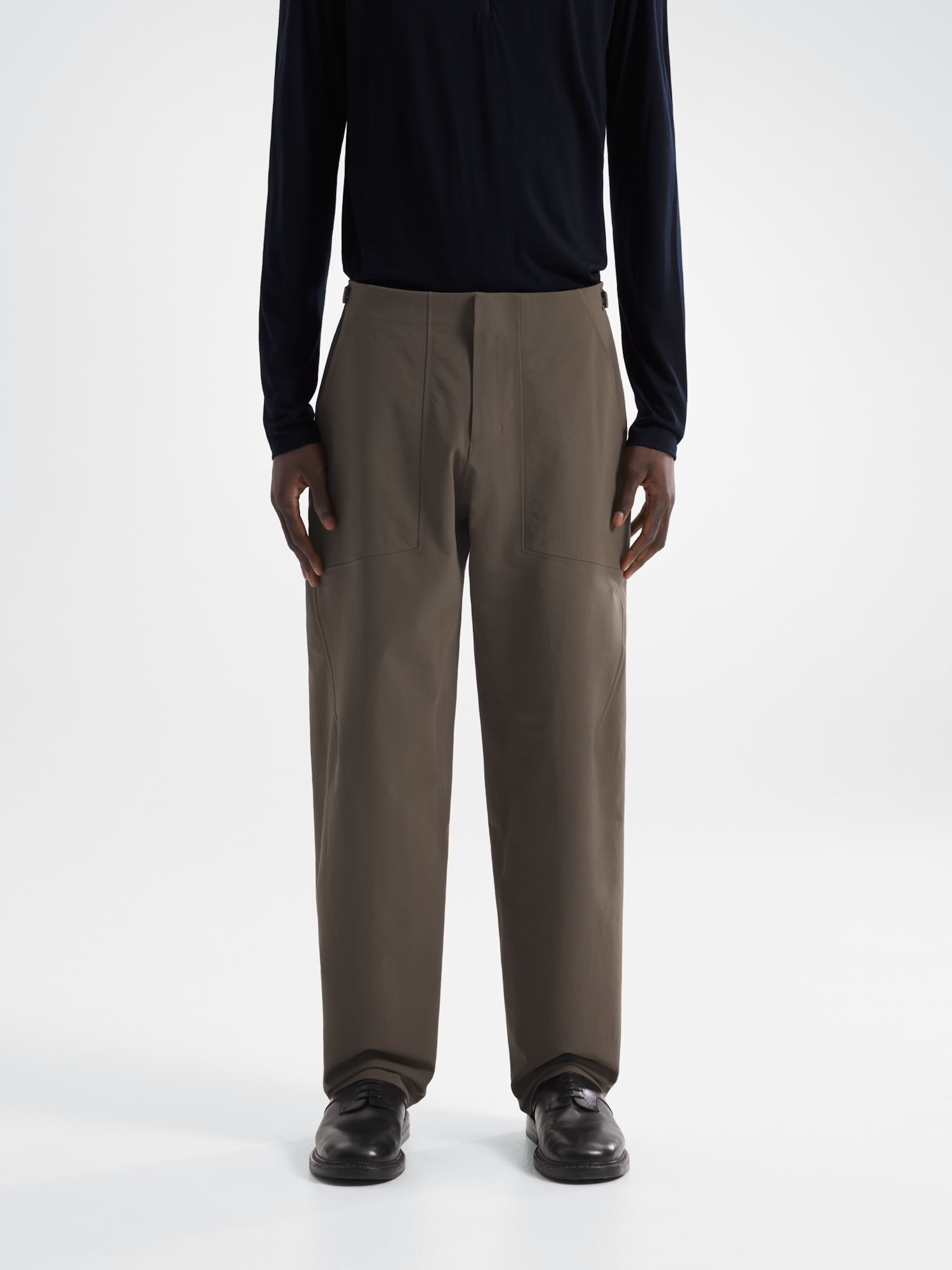 Light brown Dionde MX pants by Veilance in nylon with hidden front closure, shaped pockets, and straight hem.