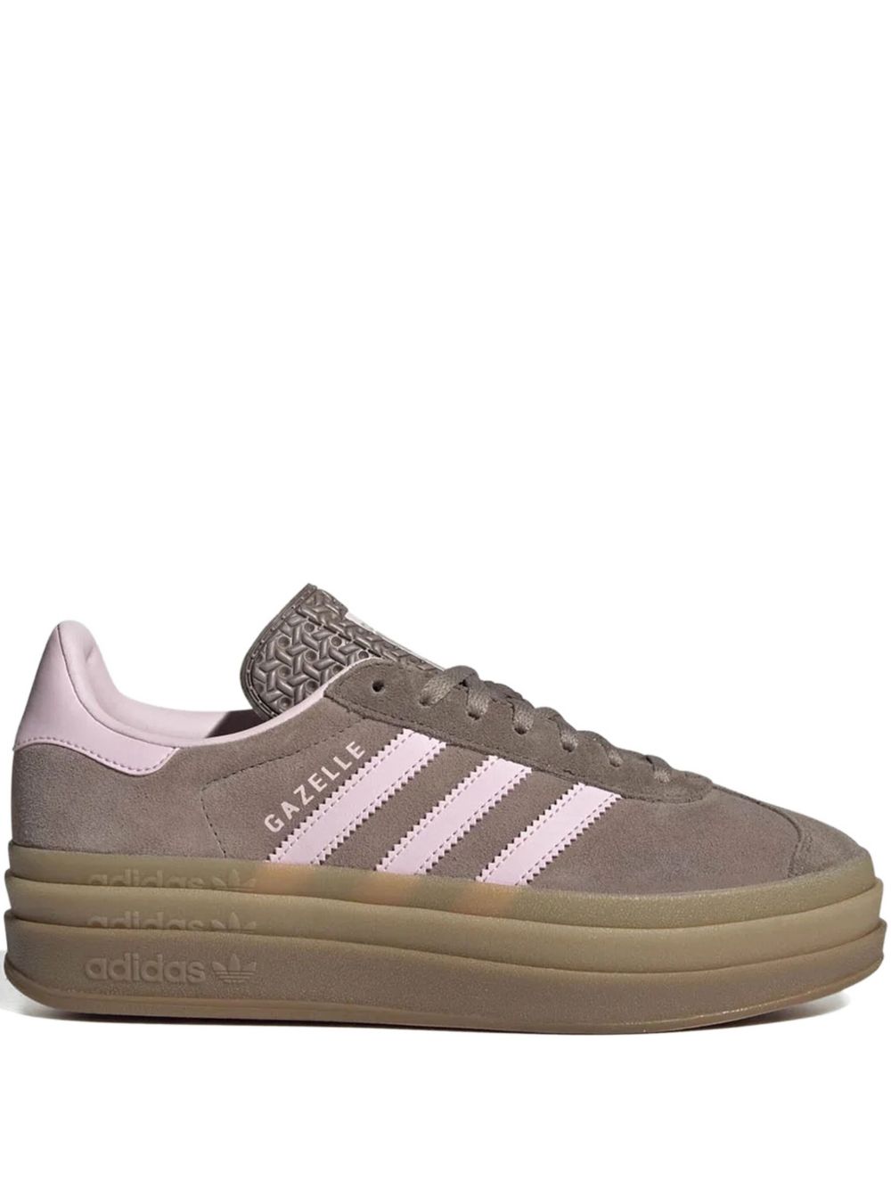 Sneakers marroni Gazelle Bold di Adidas in suede con chiusura con lacci superiori, linguetta texturizzata, dettaglio 3-Stripes sui lati, logo posteriore e suola alta in gomma a contrasto.