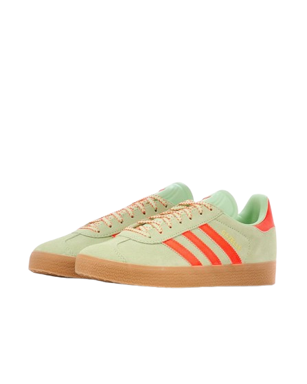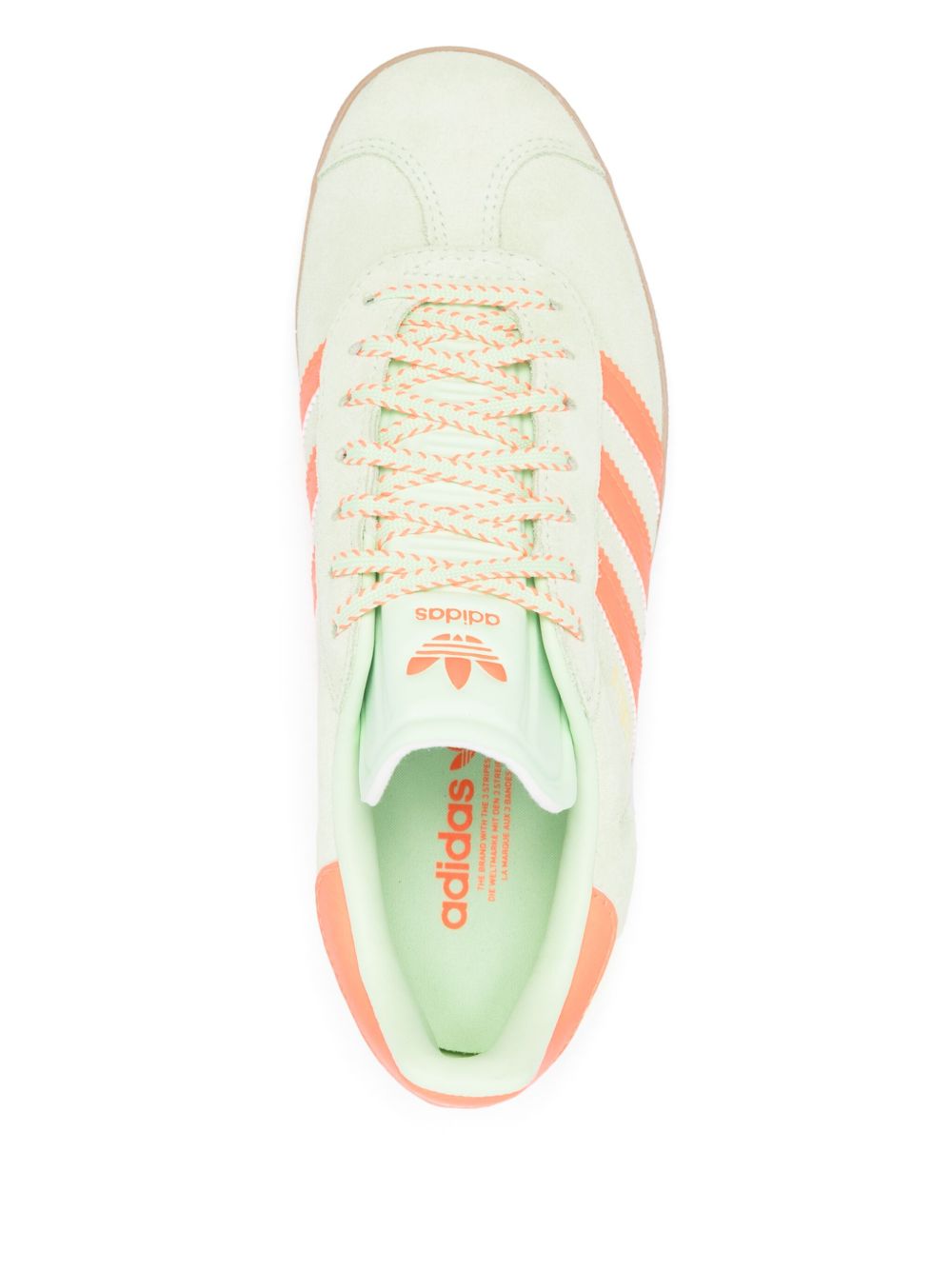 Sneakers verdi Gazelle W di Adidas in pelle scamosciata con punta tonda, chiusura con lacci frontali e suola a contrasto piatta in gomma.