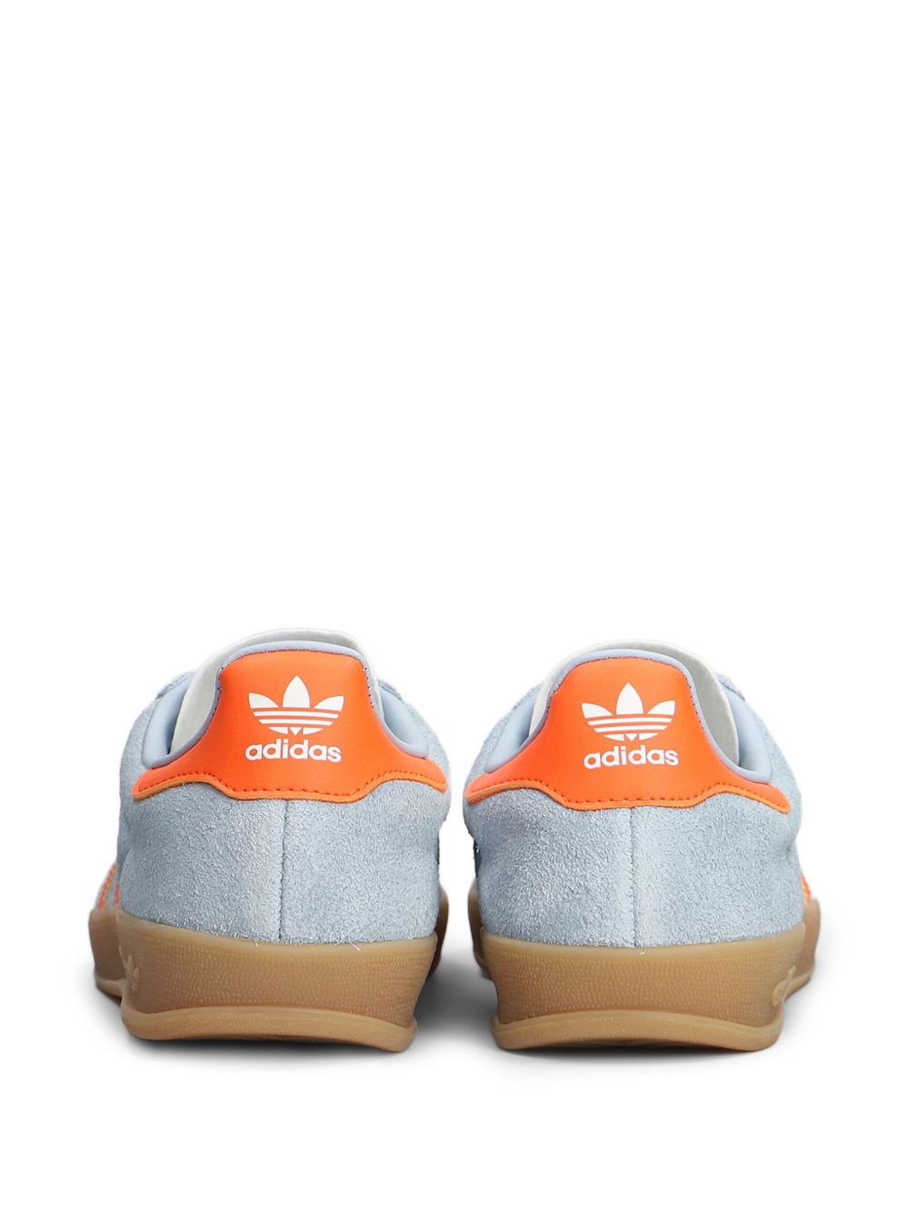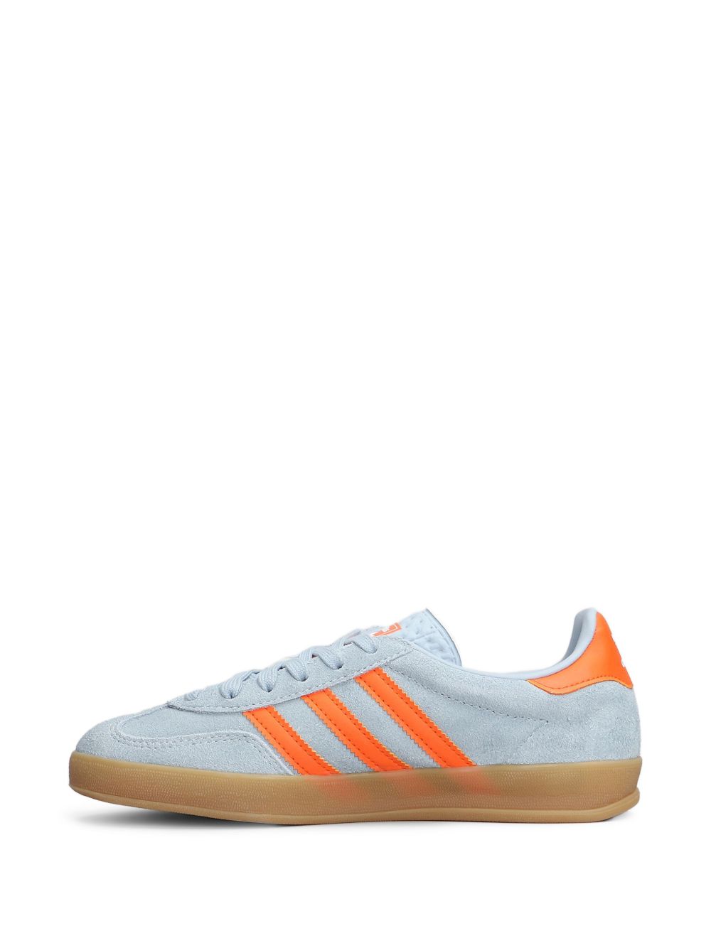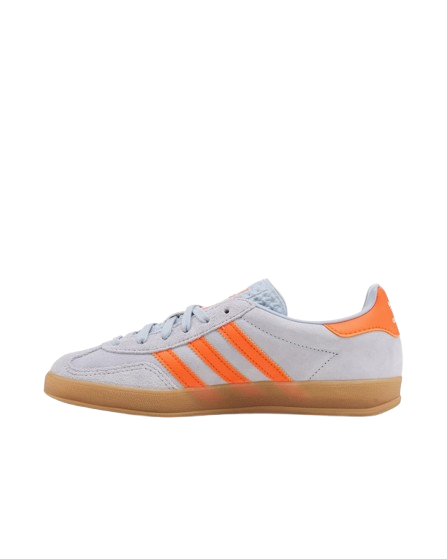 Sneakers azzurre Gazelle Indoor W di Adidas in pelle scamosciata con punta tonda, chiusura con lacci frontali e suola a contrasto piatta in gomma.