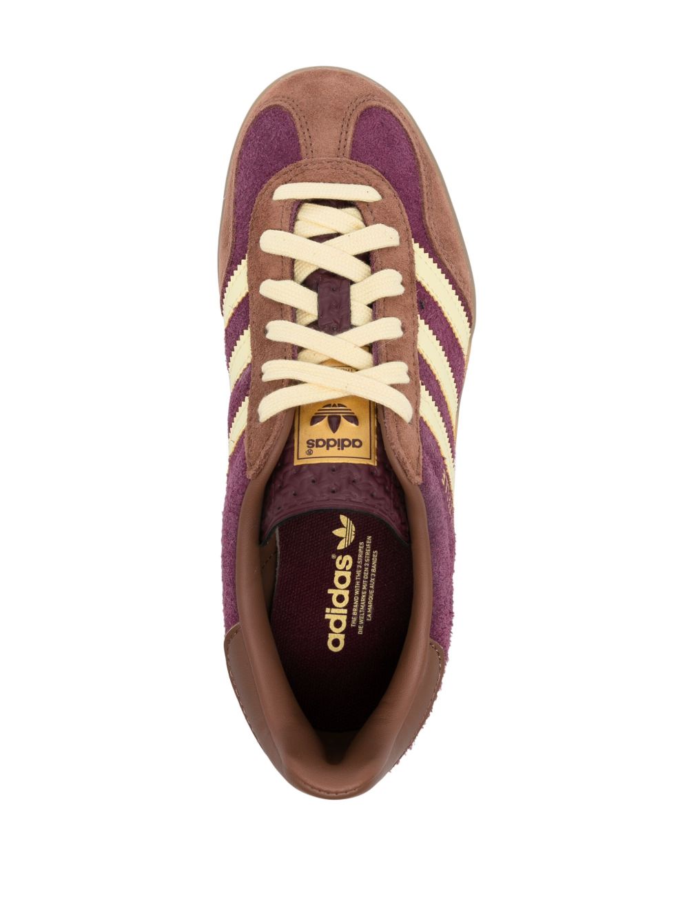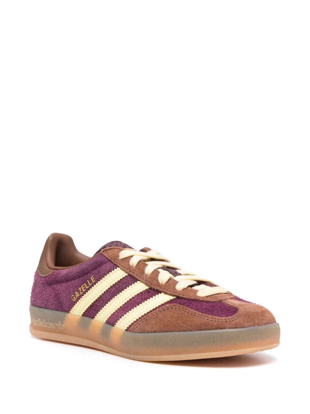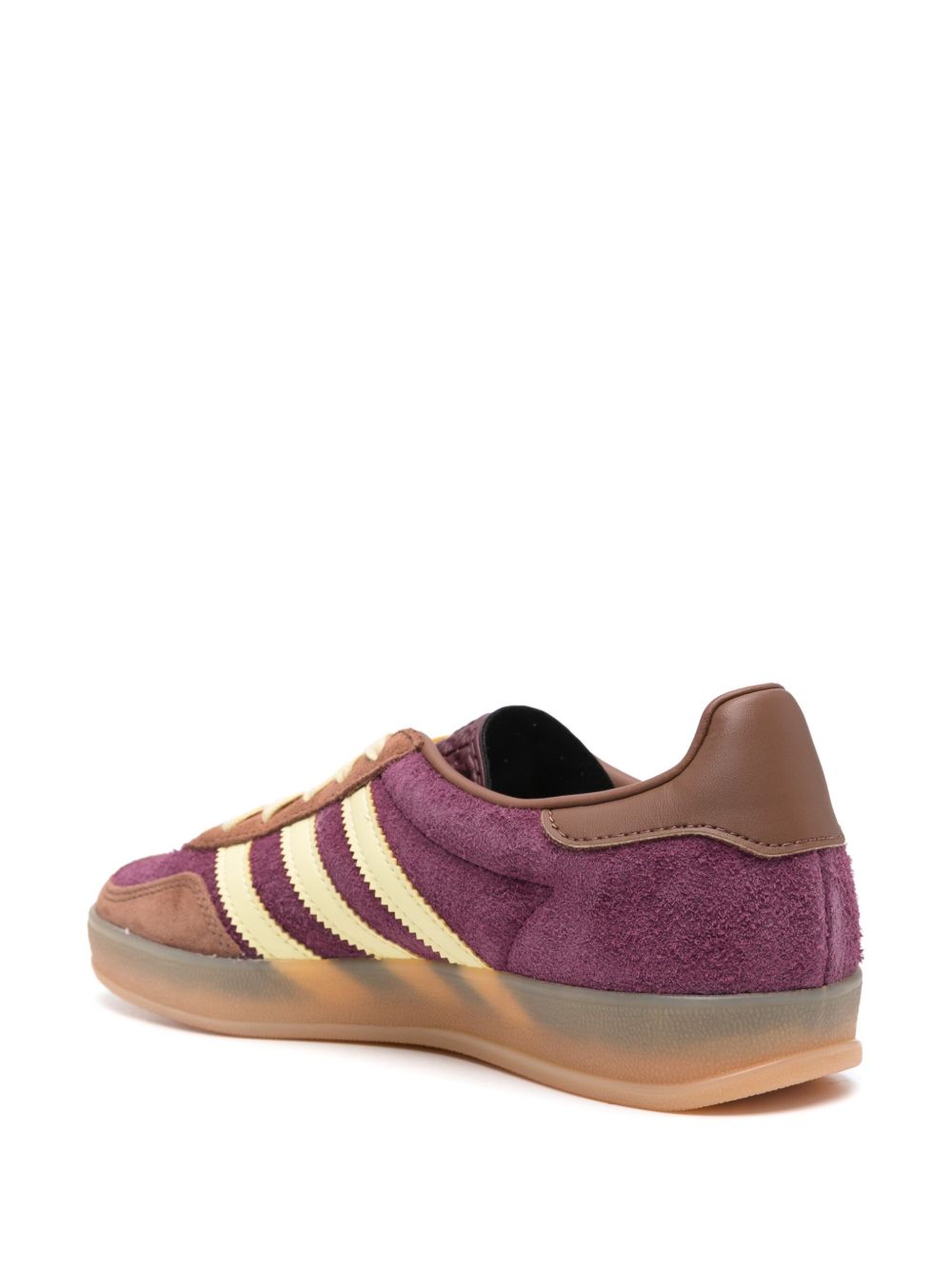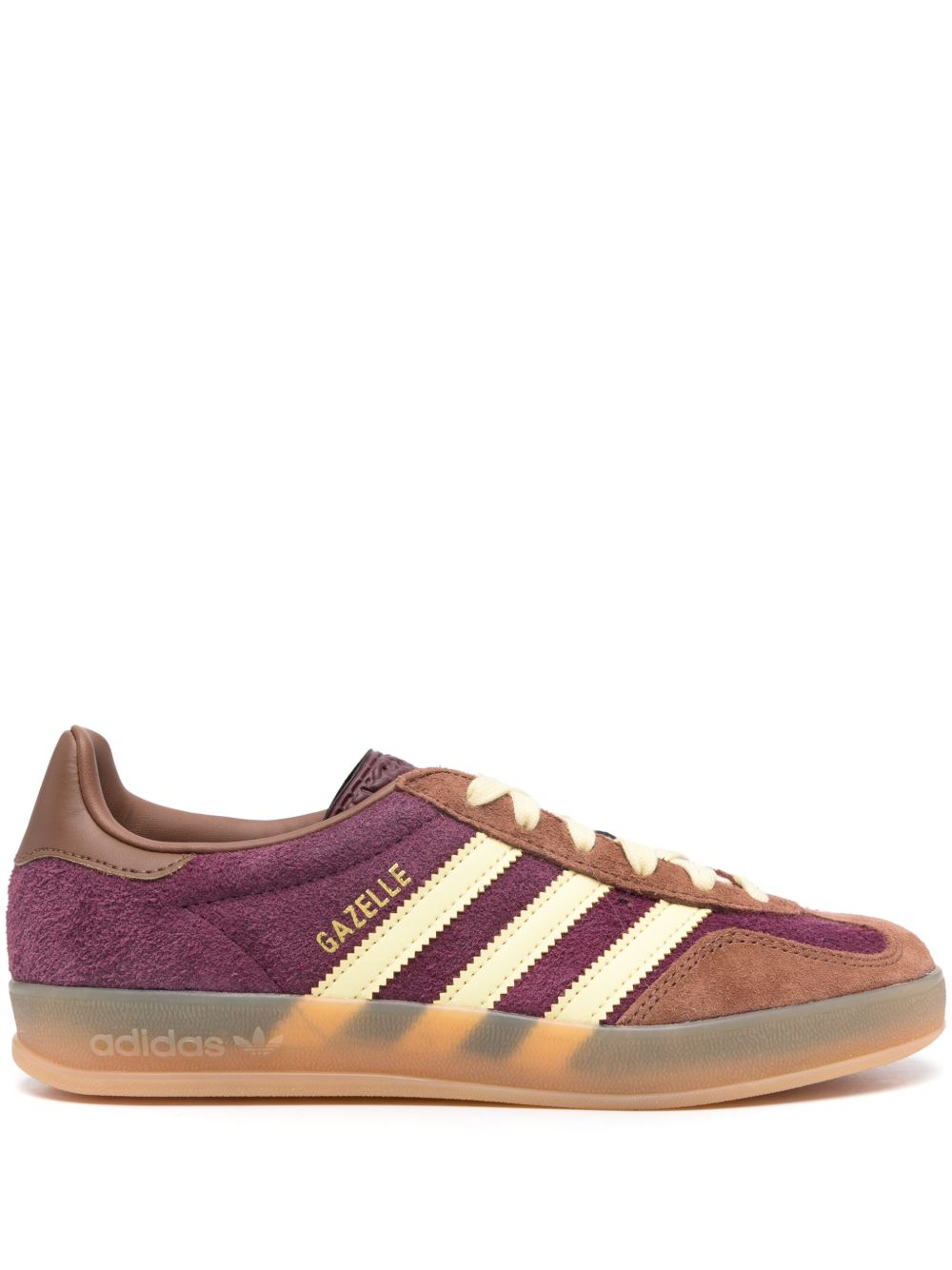 Sneakers prugna Gazelle Indoor di Adidas in pelle scamosciata con punta tonda, chiusura con lacci frontali e suola a contrasto piatta in gomma.