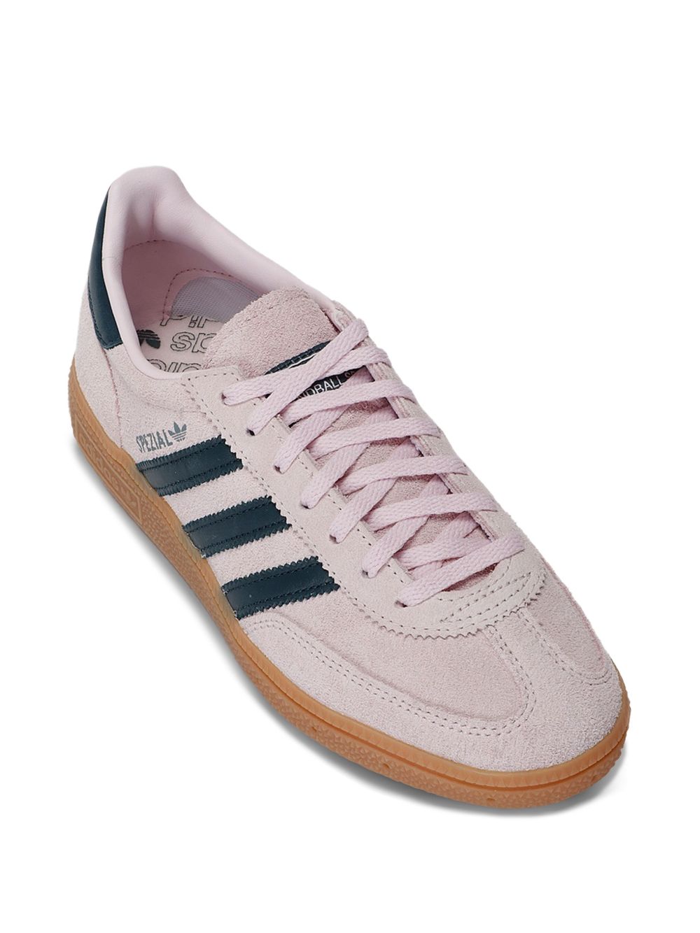 Sneakers rosa Handball Spezial W di Adidas in pelle con punta tonda, chiusura con lacci sul davanti, dettaglio caratteristico 3-Stripes sui lati, etichetta posteriore con logo e linguetta con logo.