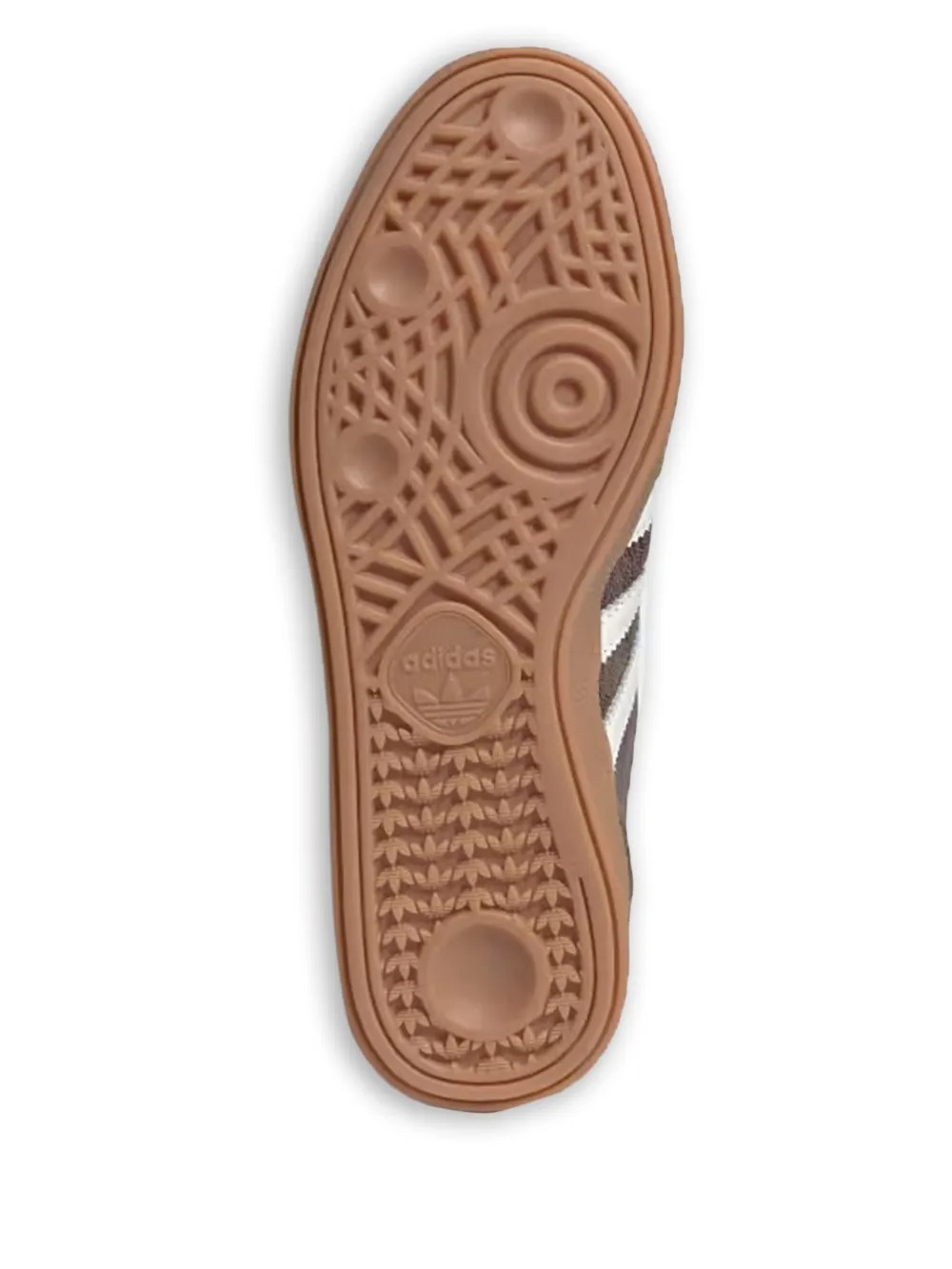 Sneakers marroni Handball Spezial W di Adidas in pelle con punta tonda, chiusura con lacci sul davanti, dettaglio caratteristico 3-Stripes sui lati, etichetta posteriore con logo e linguetta con logo.