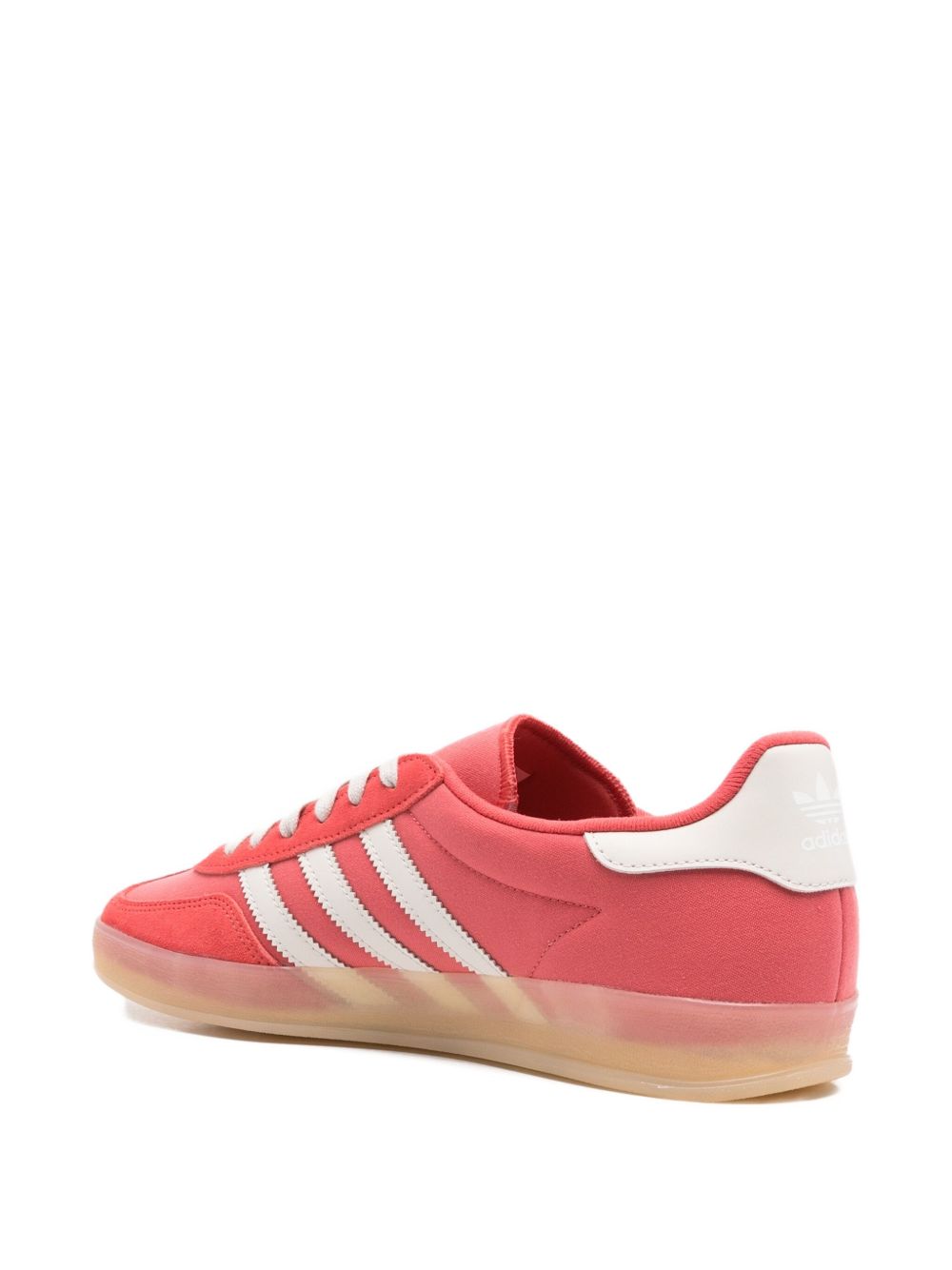 Sneakers pesca Gazelle Indoor W di Adidas in pelle scamosciata con punta tonda, chiusura con lacci frontali, dettagli neri con nastro e suola a contrasto piatta in gomma.