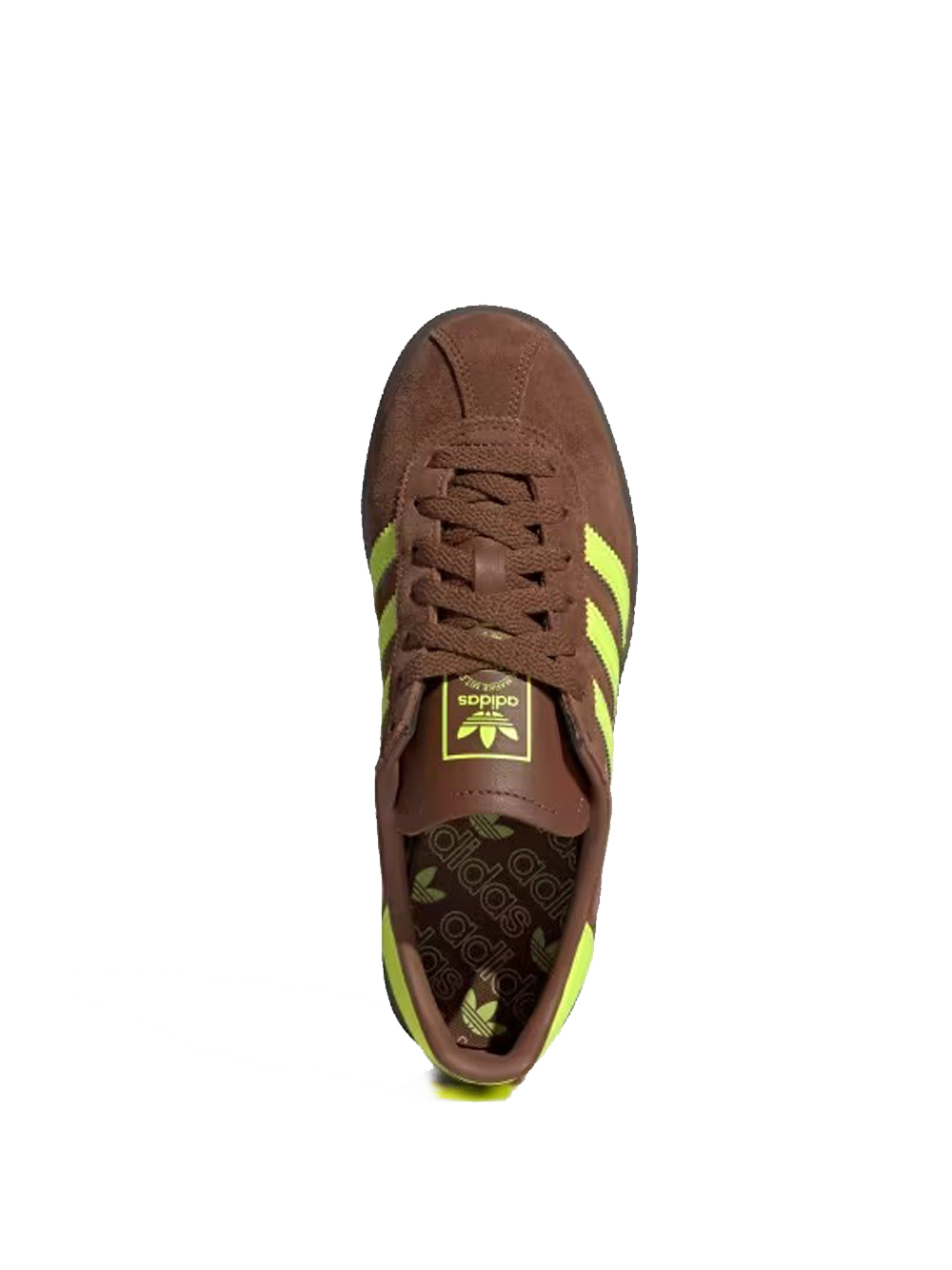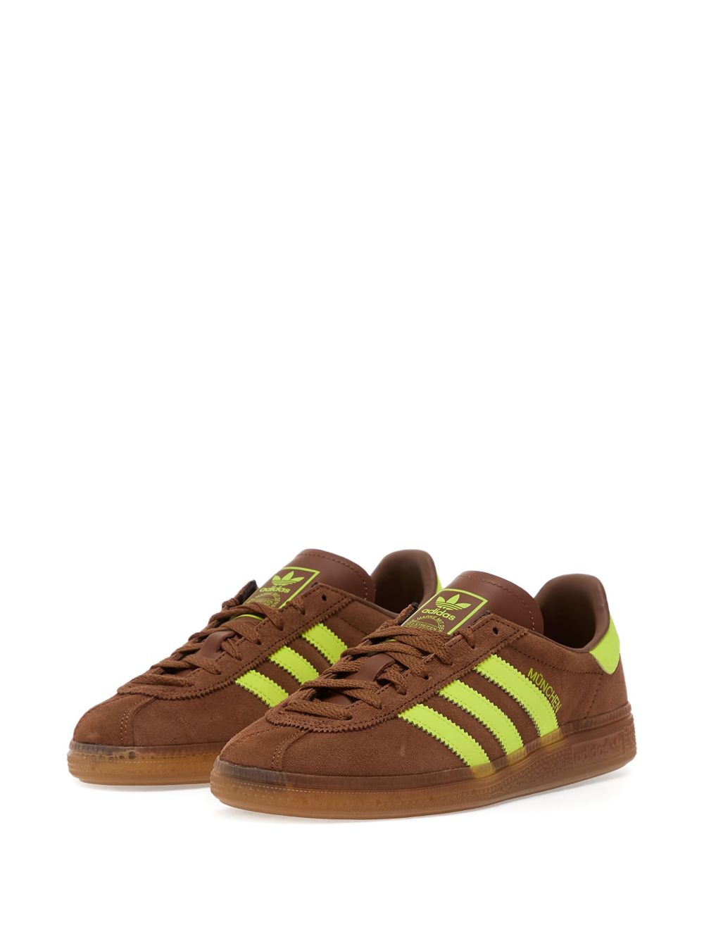 Sneakers marroni Muenchen W di Adidas in pelle con punta tonda, chiusura con lacci sul davanti, dettaglio caratteristico 3-Stripes sui lati, etichetta posteriore con logo e linguetta con logo.