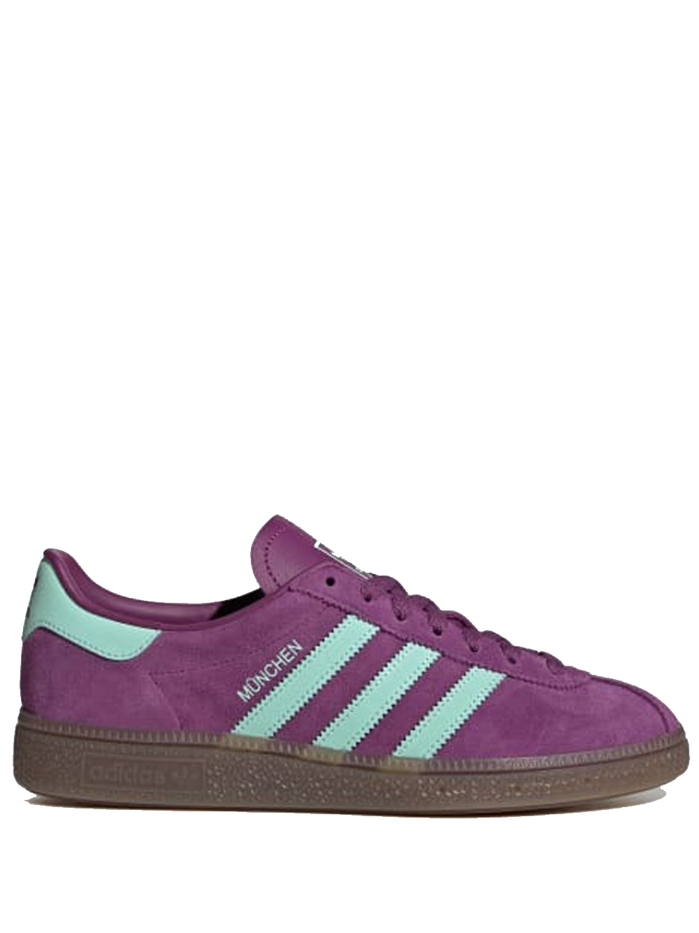 Sneakers viola Muenchen W di Adidas in pelle con punta tonda, chiusura con lacci sul davanti, dettaglio caratteristico 3-Stripes sui lati, etichetta posteriore con logo e linguetta con logo.