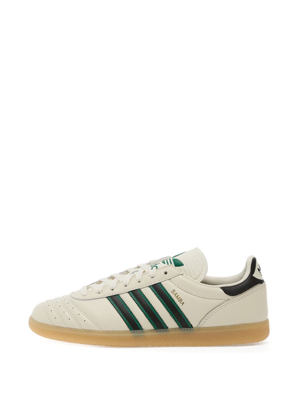 Sneakers bianca Samba JP di Adidas in pelle con punta tonda, chiusura con lacci, linguetta con logo, pannelli con cuciture in rilievo e suola in gomma.