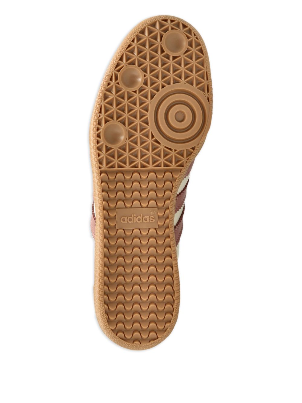 Sneakers beige Samba OG W di Adidas in pelle con punta tonda, chiusura con lacci, linguetta con logo, pannelli con cuciture in rilievo e suola in gomma.
