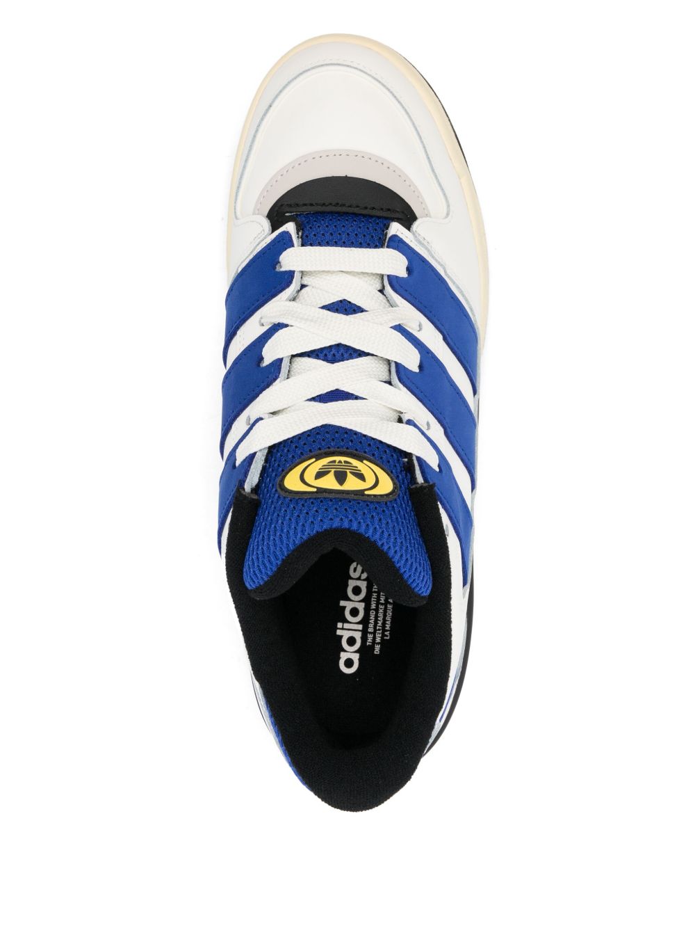 Sneakers bianche Forum 2000 di Adidas in pelle scamosciata con punta tonda, chiusura con lacci frontali.