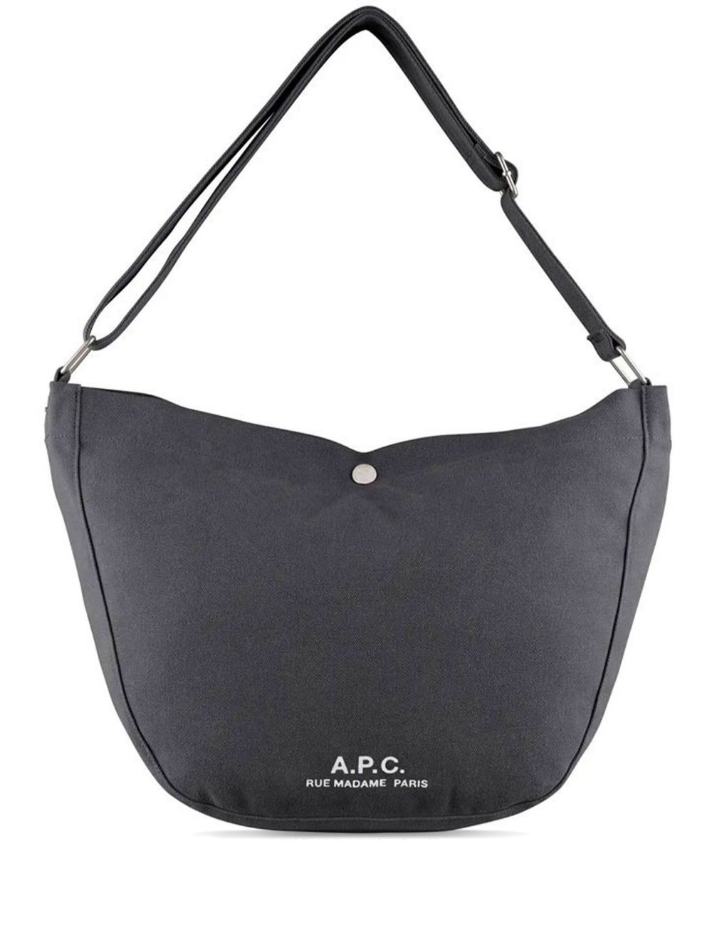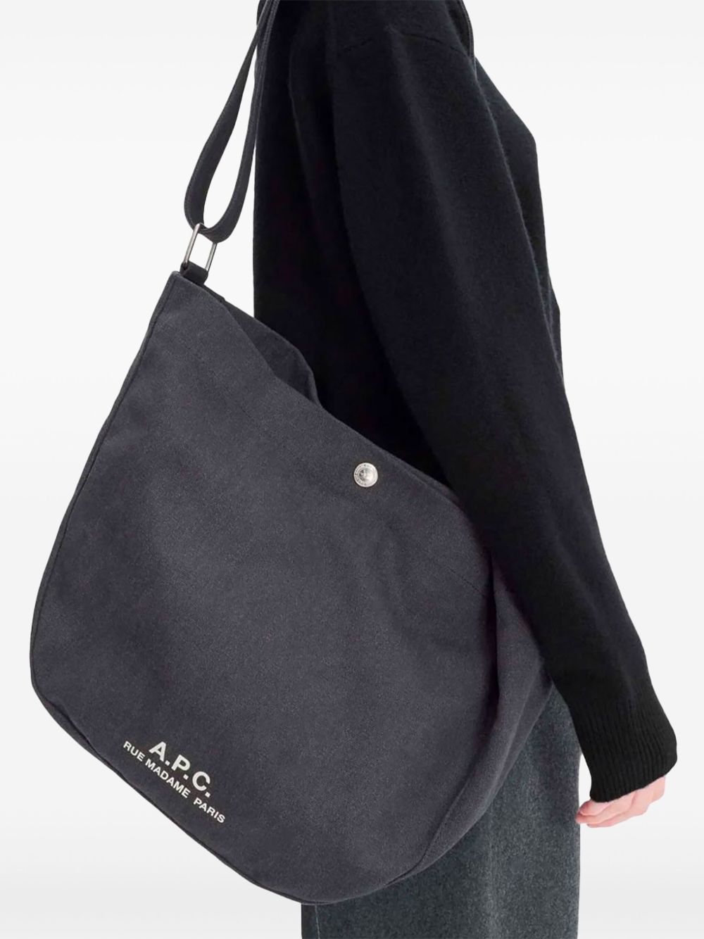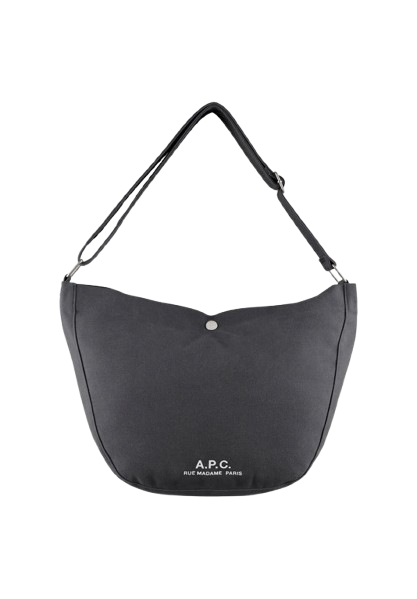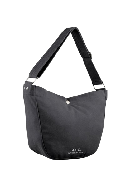 Borsa nera Jurnal Satchel di A.P.C. in cotone con tracolla regolabile, chiusura con abbottonatura a pressione, stampa con logo sul davanti, scomparto unico, tasca interna a soffietto e tasca interna applicata.