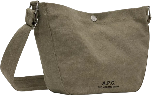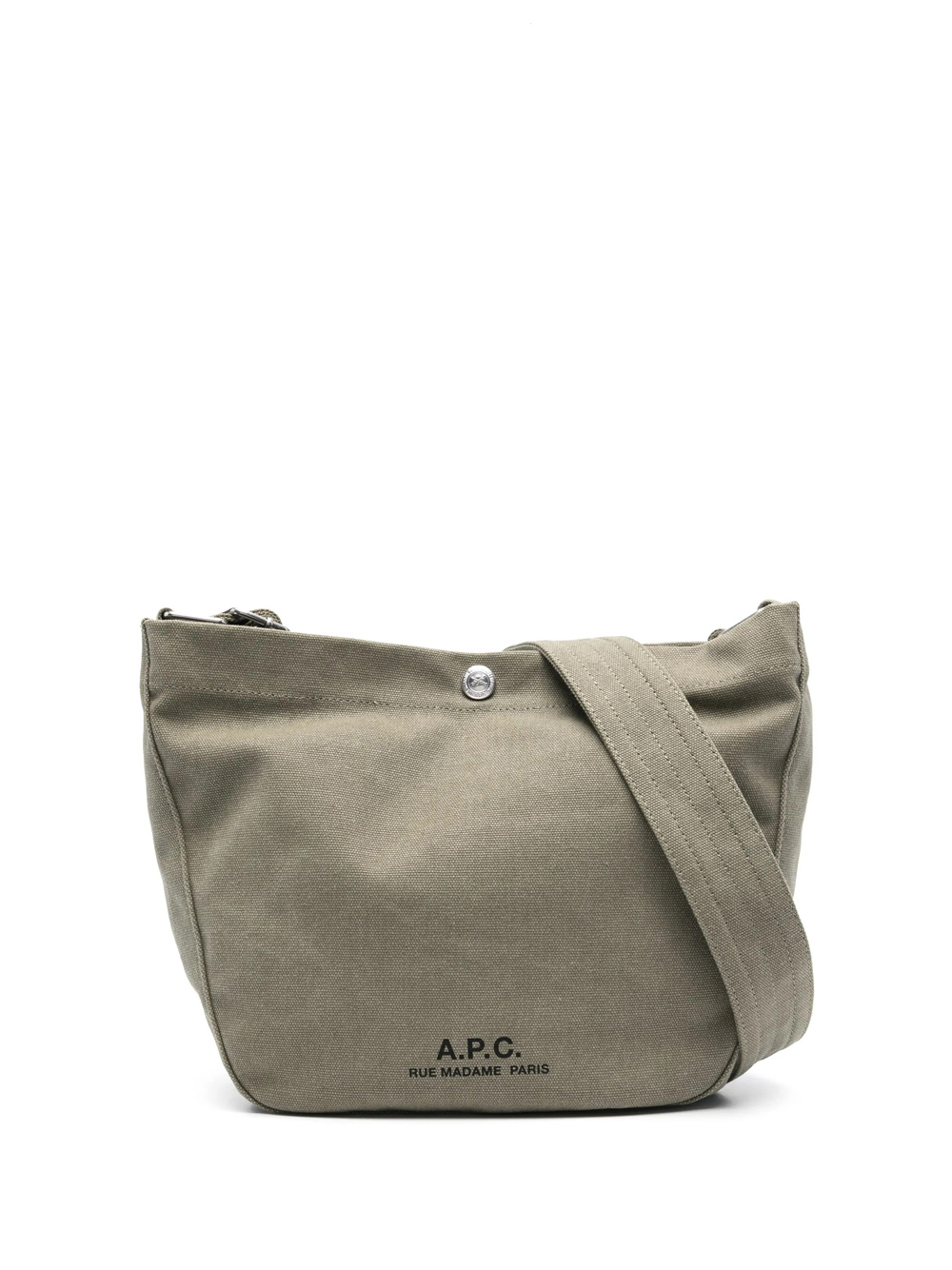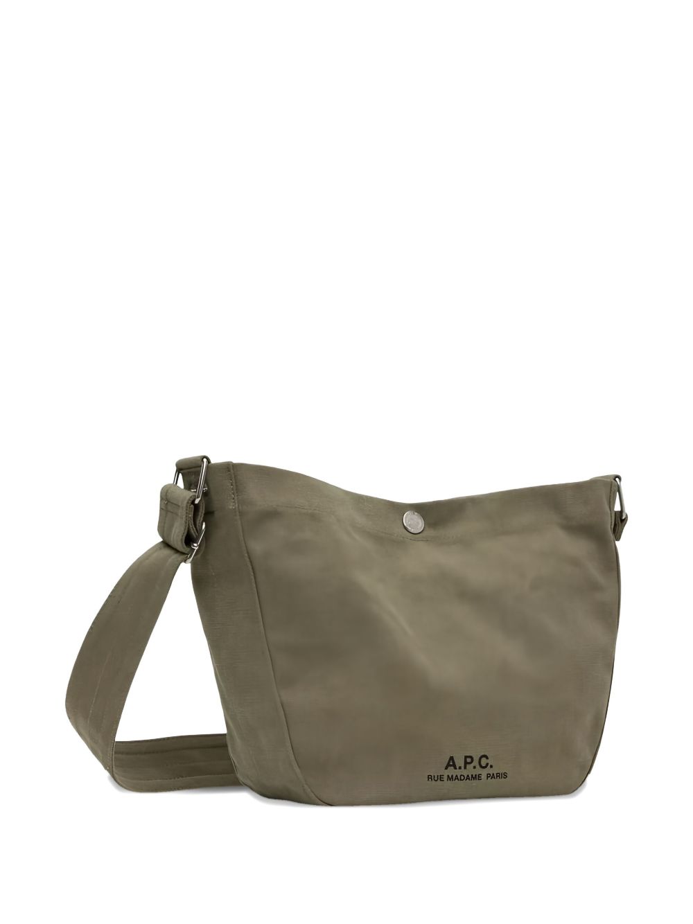 Borsa khaki Jurnal Satchel di A.P.C. in cotone con tracolla regolabile, chiusura con abbottonatura a pressione, stampa con logo sul davanti, scomparto unico, tasca interna a soffietto e tasca interna applicata