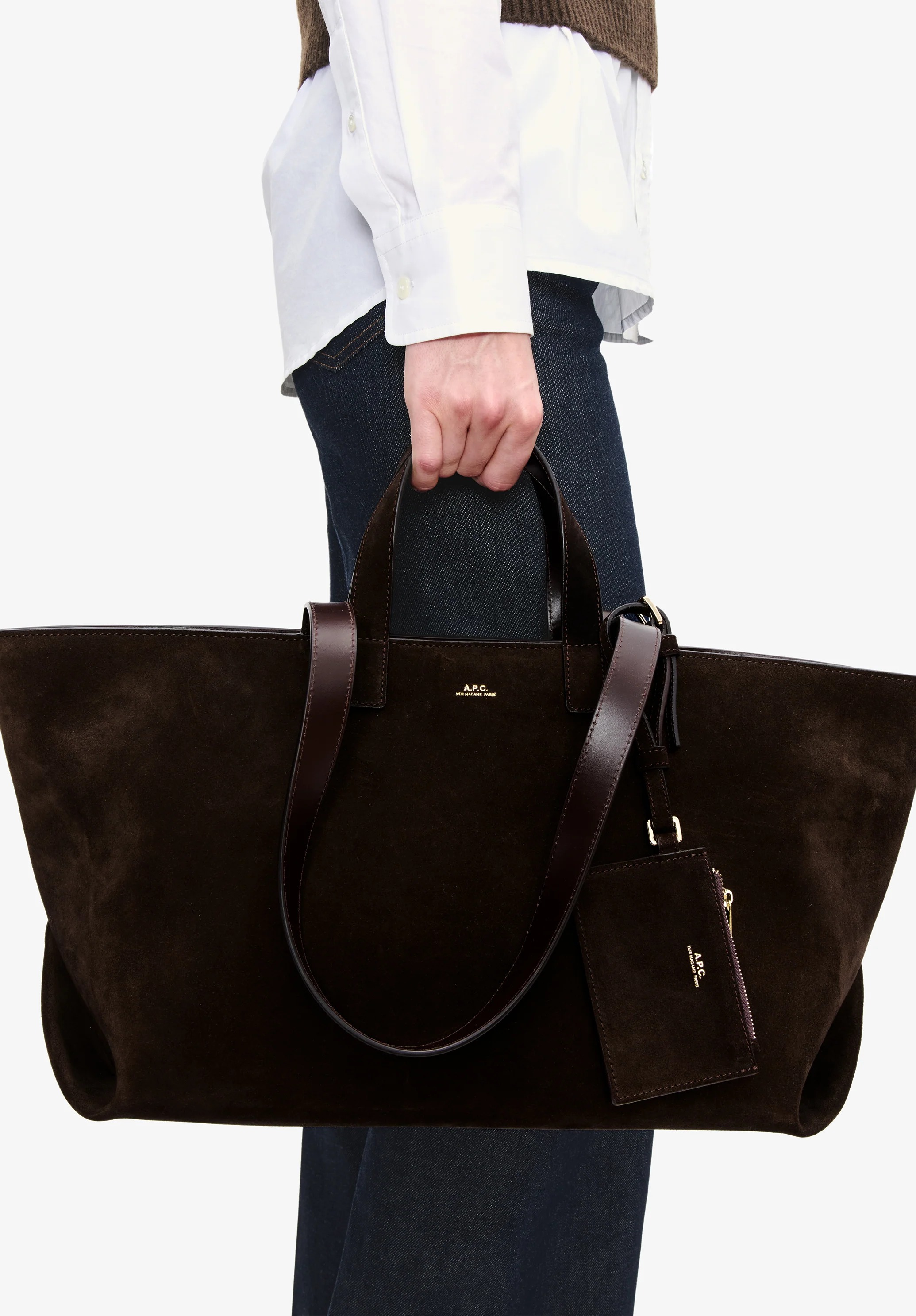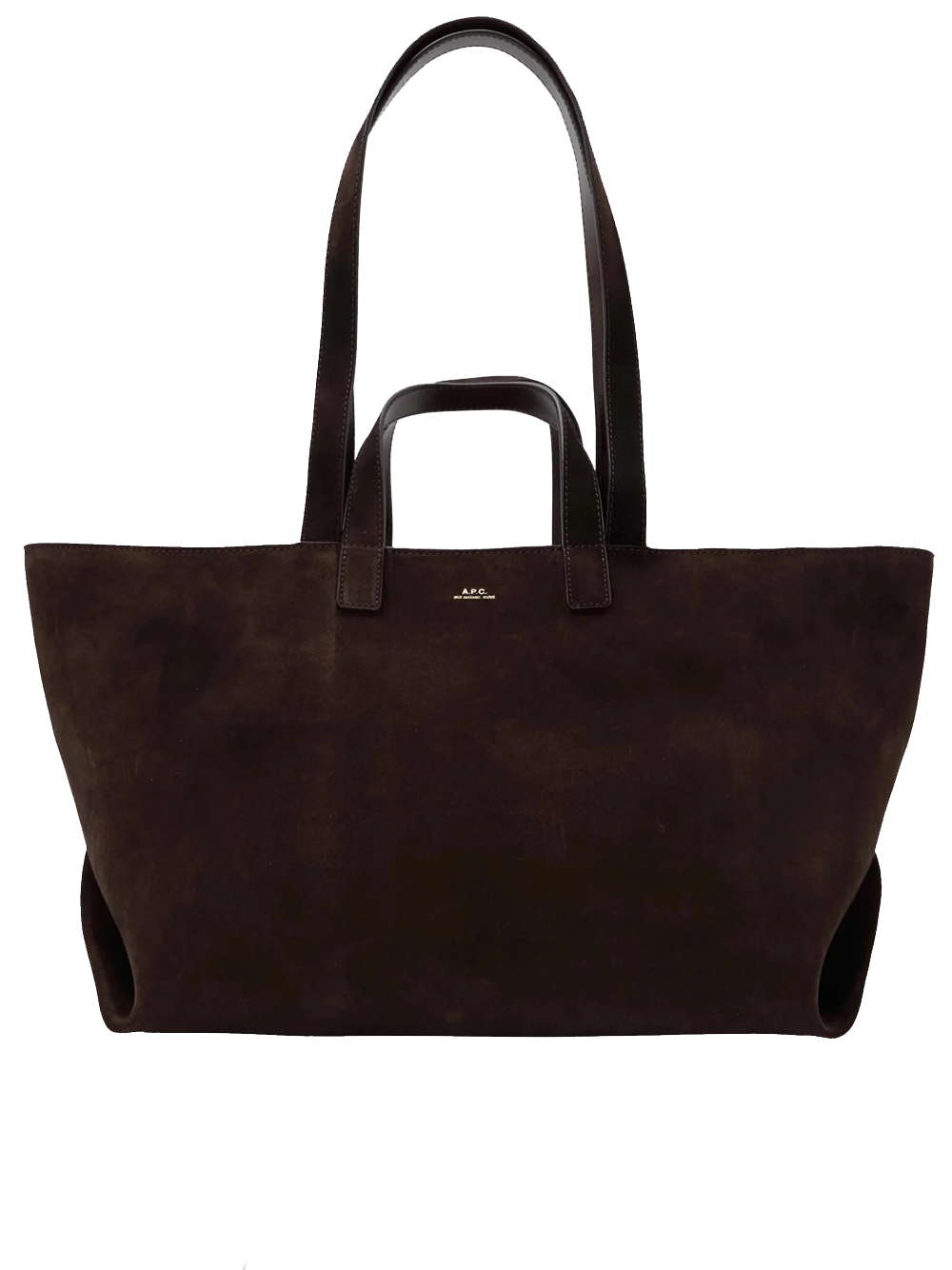 Borsa marrone di APC in pelle con dippio manico, chiusura superiore con zip e tasca interna