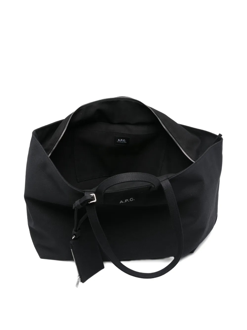 Borsa nera di APC in cotone con dippio manico, chiusura superiore con zip e tasca interna.