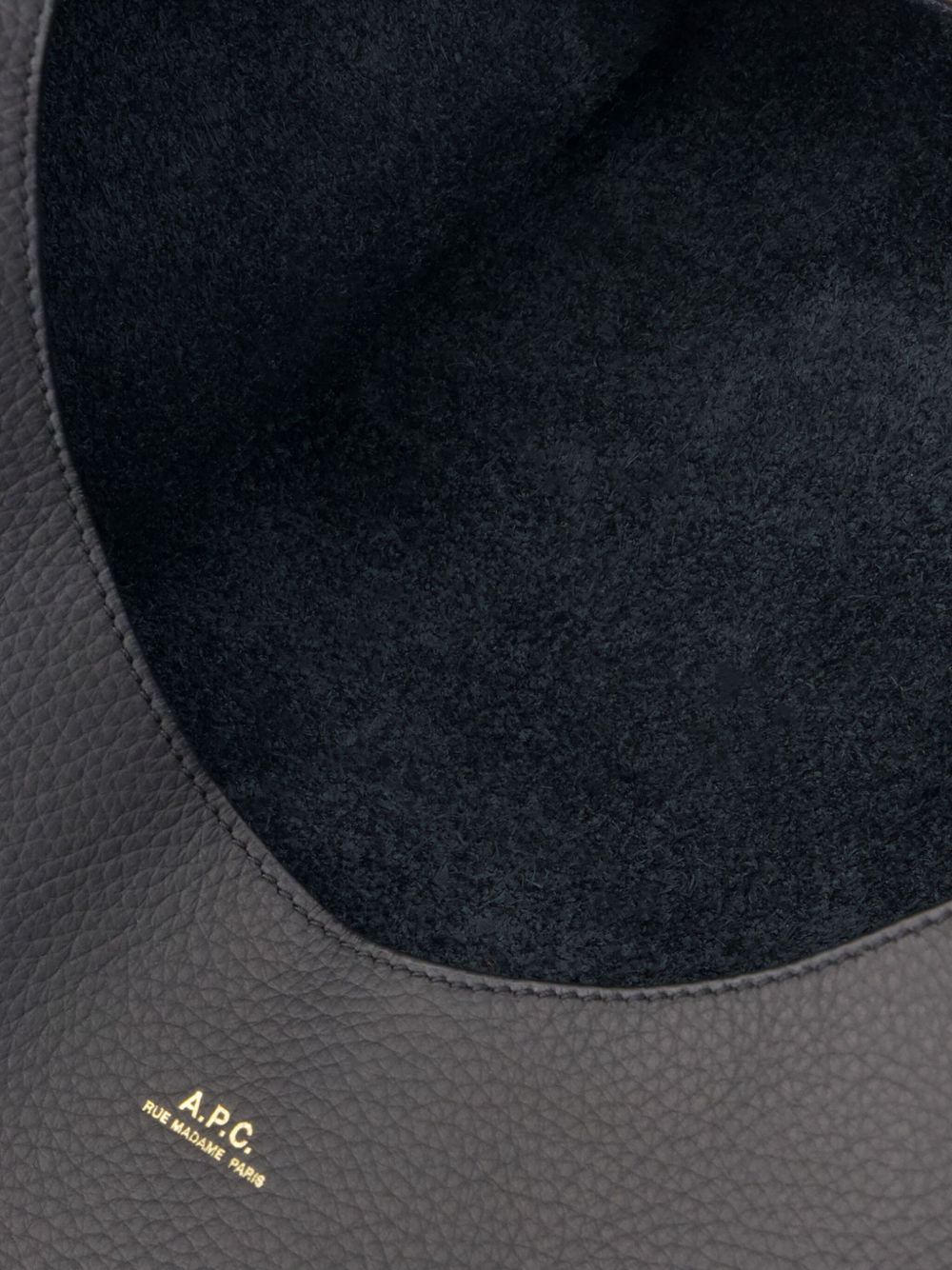 Borsa nera Le Neige di A.P.C. in poliuretano con manico unico e logo frontale.